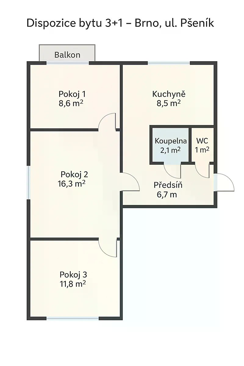 Prodej bytu 3+1 58 m² Pšeník, Brno - Štýřice