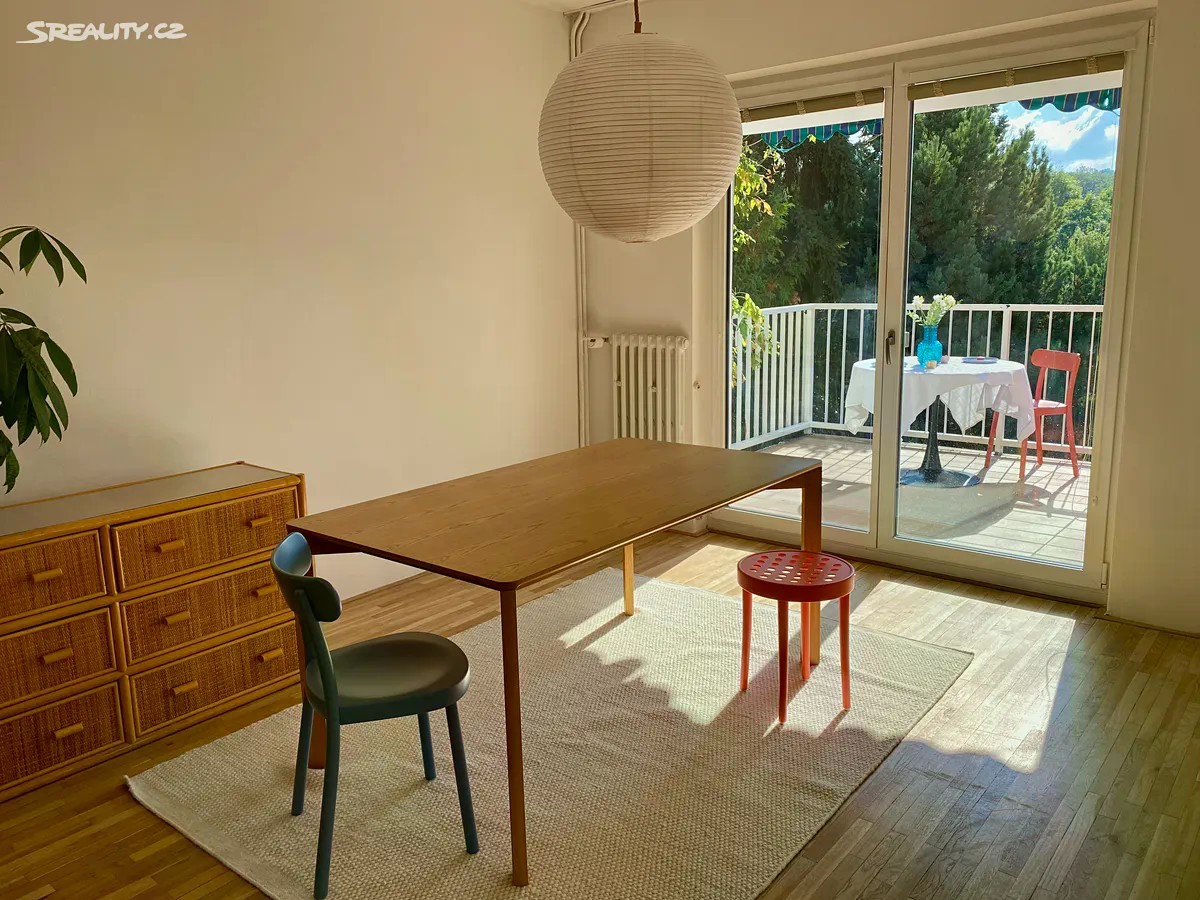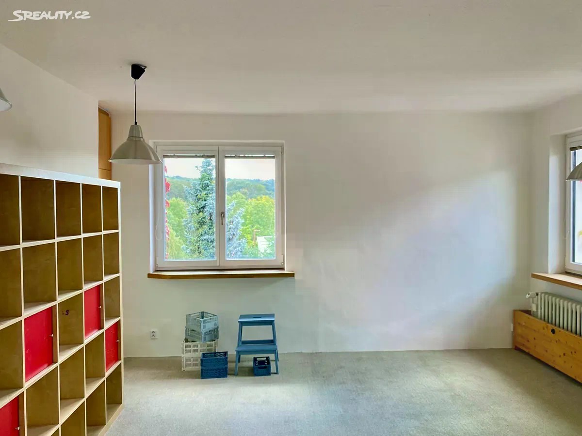 Nabízím prostorný rodinný dům s garáží na pozemku v tiché, velice žádané bezpečné lokalitě v Praze 4 Modřany. Dům je prázdný, zájemce má možnost se ihned nastěhovat. V domě jsou čtyři pokoje, kuchyň, koupelna, tři toalety, balkon, dvě terasy. Dům je podsklepený. Na pozemku je samostatná garáž. Místnosti jsou čerstvě vymalované, nedávno byla zasazena nová okna, v prvním patře byl položen nový koberec, obývací pokoj je opatřen stále „trendy“ dřevěnými parketami. Dům se nachází u lesa, zahrada slibuje soukromí, sousedé jsou bezproblémoví. Virtuálně je dům oddělen od sídliště návrším, přesto užívá jeho výhody: obchody, Montessori škola a školka. Zastávka autobusu na Obchodní náměstí je u domu, zastávky autobusu směr Kačerov a centrum se nachází v dostupné vzdálenosti tří minut chůze. Prostorný sklep s nižším stropem (180 cm) může sloužit jako místo pro vaše koníčky; dílna, herna, posilovna či sklad s vlastním vchodem na zahradu. Celkem sklep obnáší 5 samostatných místností. Sníte-li o krbu, vaše touhy budou v prostorném a vzdušném obývacím pokoji s terasou s výhledem do protilehlých kopců, plně saturovány. Navíc dřevo na jednu sezónu je k dispozici v ceně domu; -) Zároveň v obývacím pokoji najdete i úkryt před letními parny; i v těch nejvyšších teplotách okolo 40°C je zde stabilních a snesitelných 24 °C. V podkroví se nachází samostatná bytová jednotka se sprchovým koutem a toaletou, jak ji využijete, zvolte si sami: pokoj pro hosty, příbytek pro babičku, pronájem? Je to na vás. Idylické prostředí kolem psím vínem obrostlého domu, jež zbarvuje se podle ročního období, doplňuje zahrada s několika vzrostlými stromy. Díky okolní zeleni, řídkému automobilovému provozu a minimální prašnosti zde, nedaleko od hlučícího davu, najdete klidné a zdravé prostředí pro život váš, vaší rodiny i vašich zvířecích mazlíčků. Ke standardnímu komfortu patří: • Plynové vytápění a ohřev vody • Elektřina 230V a ve sklepě zásuvka 380V • Kanalizace i septik • Internet wifi, anténa na střeše nebo lze připojit ADSL přes telefonní linku