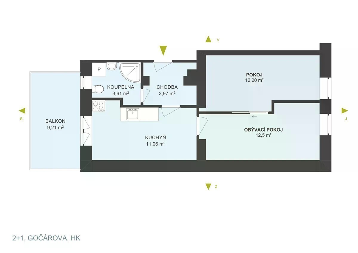 Pronájem bytu 2+1 54 m² Gočárova třída, Hradec Králové - Pražské Předměstí