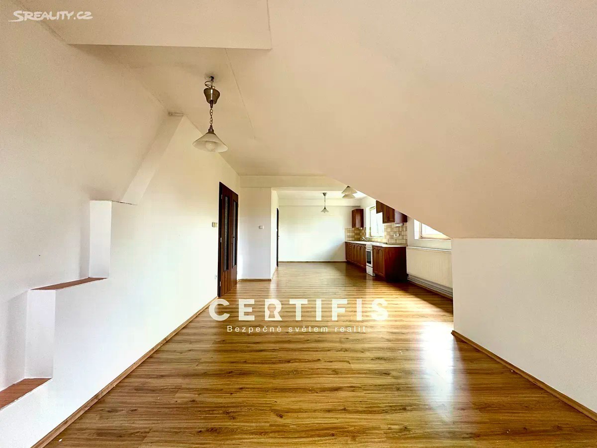 Pronájem slunného podkrovního bytu 2+1, 76 m2 - Na Pěčonce, Ostrava Nabízíme k pronájmu prostorný a světlý podkrovní byt o dispozici 2+1 a výměře 76 m2, situovaný v klidné lokalitě Na Pěčonce v Ostravě. Byt se nachází v bytovém domě a díky své poloze poskytuje dostatek soukromí a příjemné bydlení. Dispozice bytu zahrnuje obývací pokoj s kuchyňským koutem, který je možné snadno přepažit a vytvořit tak samostatnou místnost. Byt dále disponuje dvěma koupelnami, což je ideální pro ty, kdo ocení větší komfort. Na podlahách v pokojích jsou plovoucí podlahy. Vytápění a ohřev vody zajišťuje úsporný kondenzační kotel, který umožňuje individuální regulaci teploty a nízké provozní náklady. Byt se nachází v klidné oblasti, zároveň však s výbornou dostupností do centra města. Zastávky MHD jsou v docházkové vzdálenosti, cesta do centra Ostravy trvá přibližně 12-15 minut. V okolí je dostatek zeleně, základní občanská vybavenost i možnosti volnočasových aktivit. Nájemné 12 500,- Kč + 500,- Kč záloha na vodu. Elektřina a plyn formou přepisu na nového nájemníka. Kauce 26 000,- Kč. Provize RK 15 000,- Kč. Neváhejte mě kontaktovat a domluvit si prohlídku. Byt je volný ihned k nastěhování.