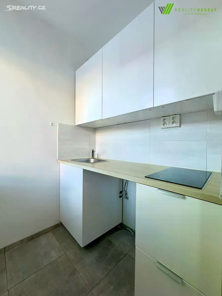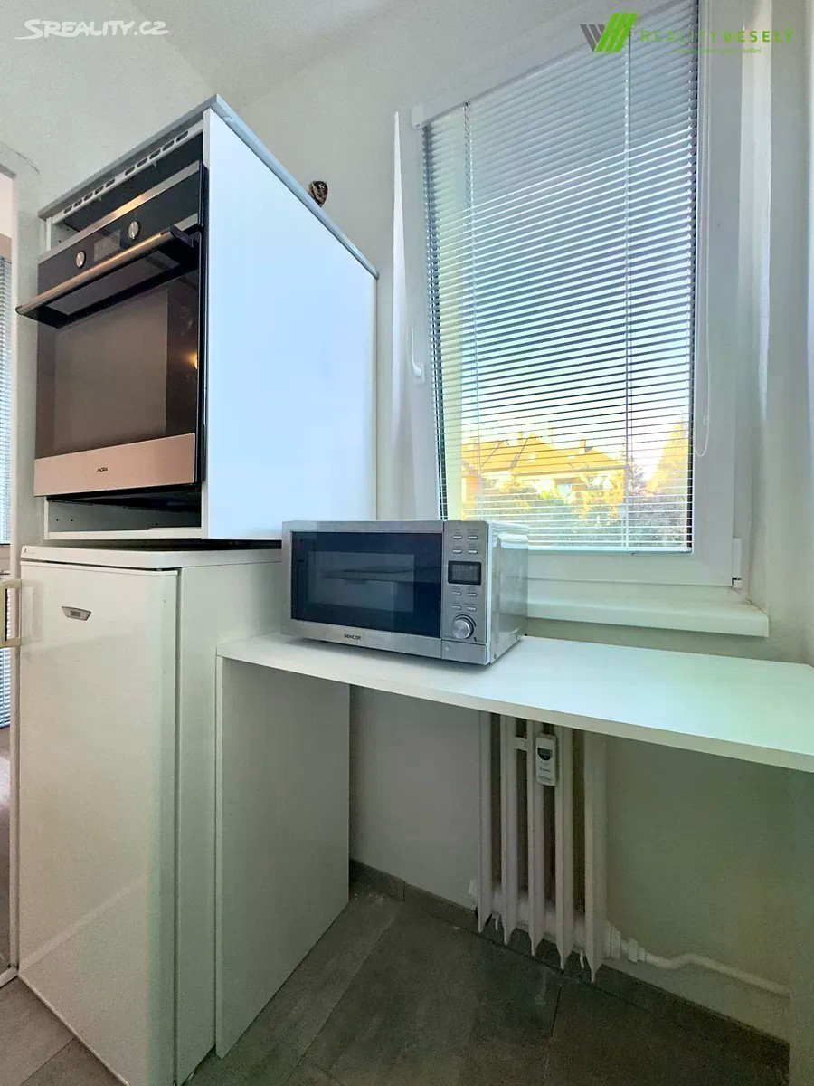 Nabízíme k pronájmu byt v osobním vlastnictví o velikosti 1+1 s balkonem, který se nachází na ulici Vídeňská v Brně. Bytová jednotka s celkovou výměrou 26 m² je situována v 1. nadzemním podlaží plně revitalizovaného panelového domu s výtahem. Byt disponuje vstupní chodbou, ze které se vchází do koupelny se sprchovým koutem, umyvadlem a toaletou. Z chodby je dále přístupný obývací pokoj (ložnice) s výstupem na balkon. Součástí vybavení pokoje jsou dva psací stoly, šatní skříň a jednolůžková postel bez matrace. Na pokoj navazuje menší kuchyně vybavená kuchyňskou linkou s varnou deskou, mikrovlnnou troubou, pečicí troubou a lednicí. Je zde také příprava na umístění pračky. Byt je nekuřácký a vhodný maximálně pro jednu až dvě osoby, případně studenta. V okolí domu se nachází kompletní občanská vybavenost. Výhodou je výborná dostupnost do centra města. Energetický štítek nebyl dodán - třída G. Byt bude volný k nastěhování od 1.10.2025 Měsíční nájemné činí 12.500, - Kč + zálohy na služby ve výši 3.200,- Kč (voda, elektřina, teplo, internet). Při podpisu smlouvy se skládá vratná kauce ve výši 20.000,- Kč + odměna RK ve stejné výši. Veškeré další informace k nemovitosti vám rád sdělím telefonicky nebo osobně na prohlídce. Neváhejte mě kontaktovat.