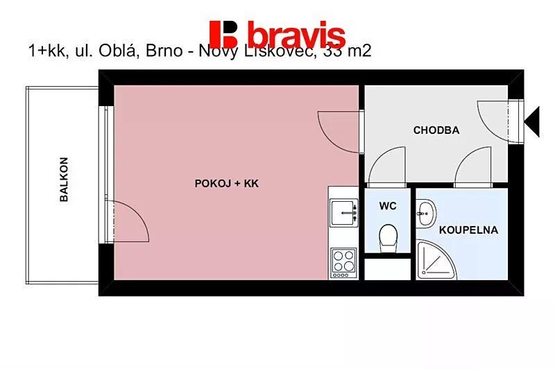 Pronájem bytu 1+kk 33 m² Oblá, Brno - Nový Lískovec