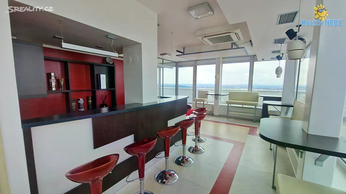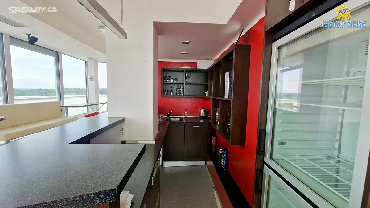 Nabízíme k prodeji exkluzivní dvoupatrový byt v celém 15. a 16. NP věže Orion, Majdalenky, Brno - Lesná. Byt se skládá ze tří částí. 15. NP je dostupné dvěma výtahy, 16. NP má svůj vlastní vchod ze schodiště a nebo ze spodního většího bytu. Obě podlaží mají venkovní rolety, 15. NP je klimatizováno, 16. NP je klimatizováno navíc s výkonnou vzduchotechnikou. V 15. NP se nachází exkluzivní zařízený byt 2+kk (184 m2) - obývací pokoj s jídelnou, barem a kuchyňskou linkou (96 m2), ložnice s pracovnou a předsíní (48 m2 - prosklený sprchový kout, kancelářské zázemí), lodžie (14 m2), předsíň se šatnou (17 m2), koupelna s vířivou vanou (7 m2), WC (2 m2). Dále se v 15. NP se nachází druhý byt 2+kk (48 m2) - předsíň s kuchyňským koutem, koupelna s WC a sprchovým koutem a dva pokoje se 3 dvojlůžky. Oba byty jsou propojené a lze je užívat jako jeden velký byt, nebo je lze oddělit, každý má vlastní vstup. V celém 16. NP se pak nachází koktejlbar s wellness zázemím a terasou (214 m2) - koktejlbar (59 m2 - bar, ozvučení Bose, diskoefekty, 34 míst k sezení, 2x WC), převlékárna (7 m2 - parní lázeň, uzamykatelné skříňky), okružní terasa (148 m2 - sauna finská / parní / 5 míst, vířivá vana /7 míst/, gril bar, 30 míst k sezení, denní a noční dalekohled s kruhovým výhledem na Brno a okolí až 120 km). Součástí jsou také dvě garážová stání a dva sklepy. Jde o klidnou lokalitu na kopci u lesa, uzavřený areál s kamerovým systémem a dostatečnou kapacitou parkovacích míst. MHD uzel a prodejna Billa v těsné blízkosti. V areálu bytového komplexu Orion se nachází restaurace s wellness centrem, plaveckým bazénem, fitnesscentrem a lékarnou. Celkově se jedná o výjimečný mezonetový penthouse v top lokalitě, rozprostírající se v celém 15. a 16. patře na vrcholu věže komplexu Orion s 360° výhledem na celé Brno a okolí. Vážní zájemci volejte Po-Pá 9-18h.