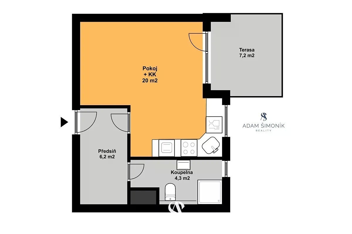 K pronájmu nabízíme byt s dispozicí 1+kk s terasou, venkovním parkovacím stáním a skladovací komorou na patře v Olomouci - městské části Povel. Bytová jednotka se nachází v 6.patře bezbariérové novostavby cihlového domu s výtahem na ulici Janského. Dispoziční dominantu tohoto bytu tvoří obývací pokoj s kuchyňským koutem a vstupem na terasu. Rohová kuchyňská linka s dřezem je vybavena sklokeramickou varnou deskou, el. troubou a vestavnou myčkou na nádobí. Z terasy (7,2 m²) se nabízí výhled na historické centrum města Olomouce. Dispozice této nemovitosti dále nabízí vstupní a spojovací chodbu a koupelnu s umyvadlem, sprchovým koutem a toaletou. Podlaha v místnosti je laminátová, ostatní podlahy v bytě jsou keramické. K bytu náleží skladovací komora (3,2 m²) situovaná na patře. Náklady za služby spjaté s užíváním bytu jsou řešeny formou vyúčtovatelných záloh - inkasa ve výši 2.200 Kč měsíčně. Byt je ideální pro max. 2 osoby, bez domácích mazlíčků. Majitel požaduje kauci ve výši dvou nájmů. Volné k nastěhování od 1.11.2025. Nemovitost se nachází v klidné lokalitě s veškerou občanskou vybaveností a dobrou dostupností do centra města prostřednictvím MHD. Zastávka tramvaje Pionýrská je situovaná v těsné blízkosti domu. V případě zájmu o bližší informace nebo sjednání prohlídky, prosím, kontaktujte certifikovaného realitního makléře prostřednictvím kontaktního formuláře nebo e-mailu.