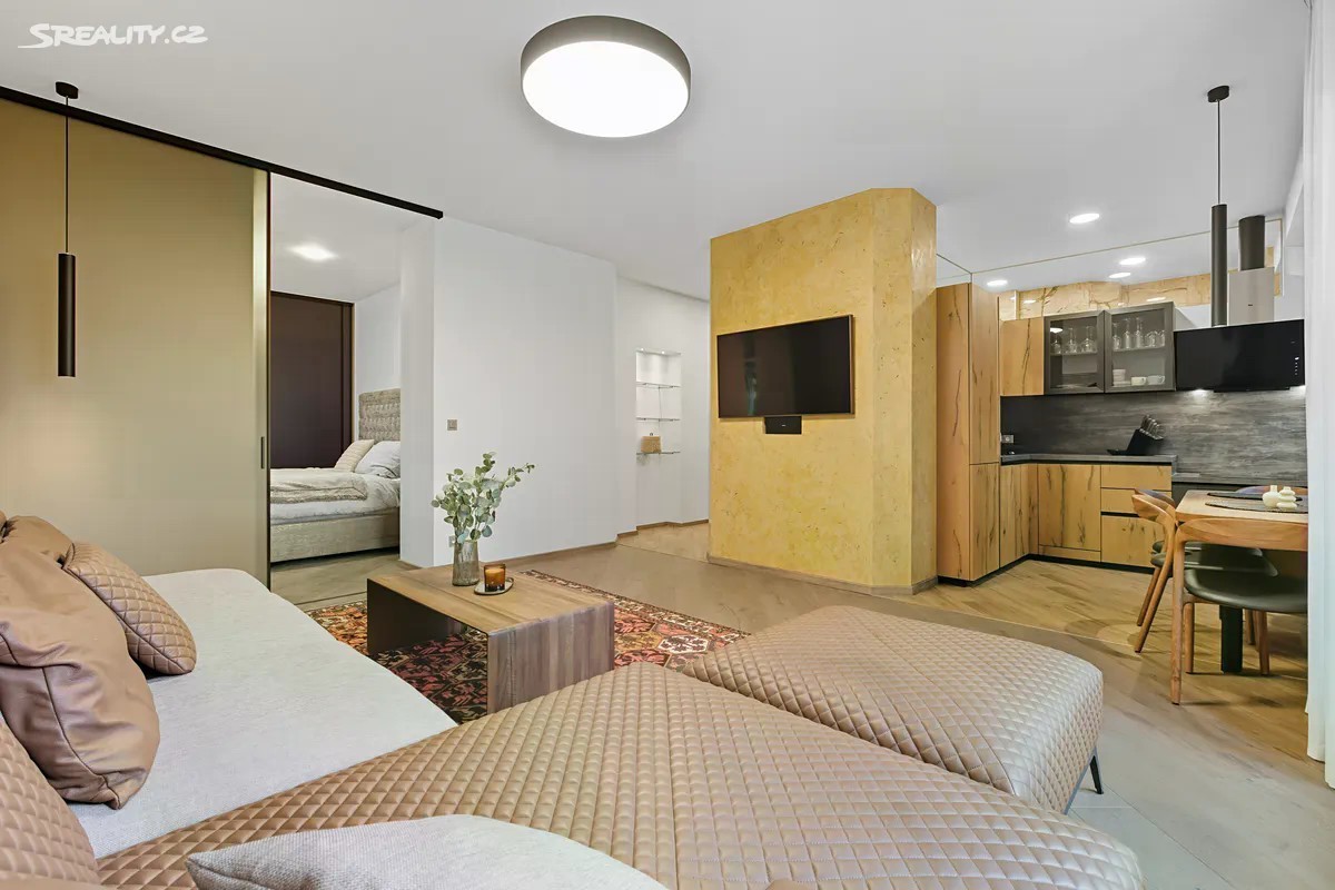 Hledáte příjemné bydlení v samém srdci Prahy? Nebo investiční byt na perfektní adrese a pěší vzdálenosti hlavních pražských památek? Vítejte v Hellichove. Nadstandardně zrekonstruovaný a zařízený byt 2+kk o ploše 58 m2 se nachází v přízemí bytového domu přímo pod Petřínskými sady, v kouzelné lokalitě pražské Malé Strany. Interiér bytu Vás přivítá jednoduchostí a minimalismem ve vyšším standardu provedení. Výjimečný charakter podtrhuje zajímavé a praktické dispoziční řešení bytu. Vybavení je součástí prodeje a vyniká přírodním materiály a teplými tóny. Prostorná vstupní předsíň je vybavená úložnými prostory, součástí je také technická komora pro pračku a bojler na ohřev teplé vody. Kuchyň plynule přechází do otevřeného a vzdušného obývacího pokoje. Kuchyňská linka je osazena vestavnými spotřebiči, součástí je indukční varná deska, elektrická trouba, digestoř, myčka nádobí, lednice a mrazák. V obývacím pokoji je velká sedací souprava, TV umístěná na zdi, falešný krb pro příjemnou atmosféru. Ložnice navazuje ve stejném duchu. Zařízená dominantní manželskou postelí s nočními stolky a velkou, prakticky řešenou šatní skříní. Koupelna je zařízena sprchovým koutem, umyvadlem a WC se sprchou. V pokojích najdete praktické elektricky ovládané vnitřní zatemňovací rolety, které zajistí příjemné soukromí. Celý byt je osazený kvalitním osvětlením. Nová dřevěná dvojitá okna s kvalitním izolačním dvojsklem efektivně odhlučňují celý prostor orientovaný do ulice. Orientace oken je na sever a východ. Na podlaze je kvalitní dlažba v předsíni a kuchyni, v pokojích je pak dřevěná podlaha. Topení řešeno elektrickými radiátory, v koupelně topný žebřík. K bytu náleží sklepní kóje v suterénu domu. Dobře fungující SVJ a dům v dobrém stavu. Ve vnitrobloku domu se nachází dvorek ke společnému užívání. Lokalita se pyšní dobrou občanskou vybaveností a dostupností obchodů i služeb. Pro aktivní odpočinek a relaxaci lákají Petřínské sady hned za domem a blízké veřejné zahrady. Dopravní dostupnost je perfektní, tramvajová zastávka Tyršův dům přímo vedle domu, odkud se lehce dostanete jak do centra města, na Anděl i Malou Stranu či do Holešovic a Dejvic. Malostanské náměstí a Karlův most 5 min. chůze. Pražský hrad 15 min chůze. Jste vládním úředníkem či dokonce ministrem? Poslanecká sněmovna ČR a Senát se nacházejí 10 min. chůze od domu. Ministerstvo školství pouze 2 min chůze : ) Potraviny 1 min. od domu. MŠ a dětské hřiště hned vedle. Parkování před domem na rezidentních zónách. Pokud hledáte stylové bydlení v srdci Prahy, neváhejte a domluvte si prohlídku. Těším se na Vás!