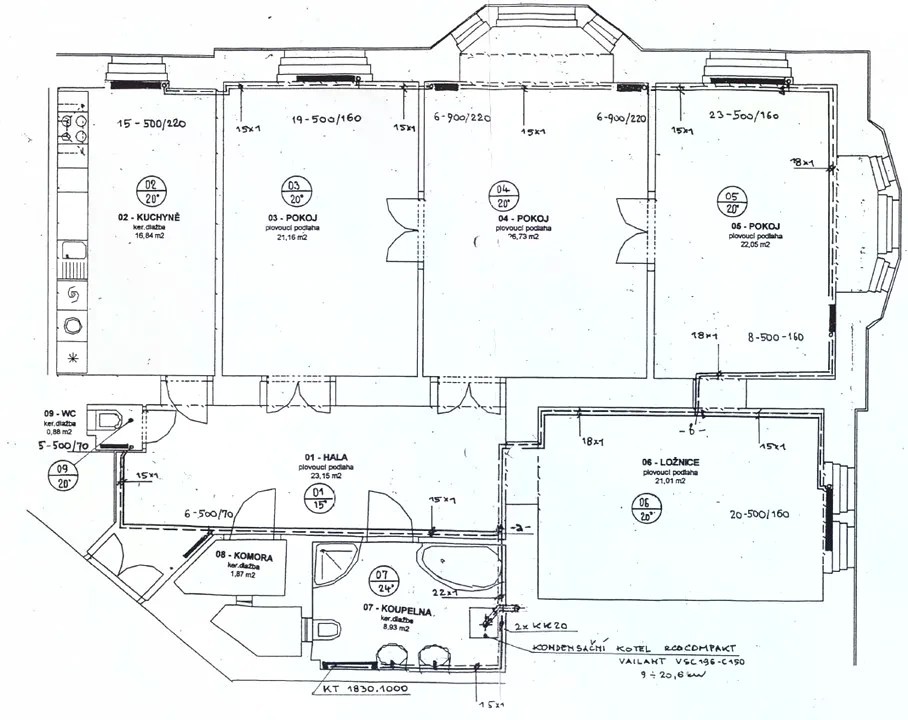 Exkluzivně nabízíme prodej prostorného, světlého bytu 4+1 (150 m2) po rekonstrukci v Praze 5. Byt s nádherným výhledem na Vyšehrad a orientací na jih a východ je situován ve 3.podlaží krásného secesního domu s novou fasádou, střechou a výtahem. Disponuje prostornou halou (23m2), kuchyní (17 m2), obývacím pokojem (27 m2), ložnicí s vestavěnými skříněmi (21 m2), dvěma dalšími pokoji (21 a 22 m2), koupelnou s vanou, sprchovým koutem, dvěma umyvadly a WC (9 m2), technickou místností a samostatným WC s umyvadlem. Všechny pokoje jsou průchozí. V kuchyni je sporák s indukční sklokeramickou deskou, digestoř, trouba, myčka, lednice s mrazákem a pračka. Plovoucí podlahy a dlažba v kuchyni, v koupelně, WC a u vstupu do bytu. Podlahové vytápění v koupelně a perfektně odizolovaná okna, vytápění plynovým kotlem Buderus umístěným v technické místnosti, bezpečnostní dveře Next, internet. Možnost uskladnění kol, kočárku atd. ve společném sklepě. Parking před domem (modré zóny). Vynikající dopravní dostupnost - byt je situován v klidné ulici pražského Smíchova mezi stanicemi metra Smíchovské nádraží a Anděl a je ideální rovněž pro reprezentaci a kancelář firmy nebo jako investice. Cena: 21.800.000 Kč. Energetická náročnost budovy: E.