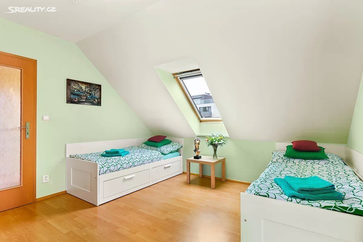 Přímý majitel nabízí k pronájmu plně zařízený prostorný rodinný dům o dispozici 5+kk až pro 8 osob s dvěma koupelnami a toaletami, které se nacházejí na pozemku o rozloze 1125 m² v atraktivní lokalitě Praha 8 - Dolní Chabry. Rodinný dům (5+kk s dílnou a garáží) má užitnou plochu 258 m² a nabízí komfortní bydlení až pro 8 osob. Přízemí tvoří prostorný obývací pokoj s kuchyňským koutem, krbem, komorou a jídelnou s přímými vstupy na terasu a zahradu, koupelnou se sprchovým koutem, toaletou a pračkou. Z terasy je v přízemí domu venkovní vstup do menší místnosti, která může sloužit jako dílna nebo sklad zahradního vybavení. V obývacím pokoji jsou dvě pohovky, jedna rozkládací na dvojlůžko, takže zde jsou další tři lůžka k příležitostnému přespání hostů apod. Ve 2. nadzemním podlaží se nacházejí 4 pokoje v každém po dvou lůžkách a koupelna s rohovou masážní vanou, toaletou a bidetem. Celková kapacita lůžek včetně kompletních lůžkovin je tedy 11. K domu náleží venkovní terasa s posezením a venkovním grilem, zahradní domek, zahradní lehátka, houpačka a bazén se zastřešením, který přináší příjemné možnosti pro relaxaci a volný čas od jara do podzimu. V domě je nový moderní zabezpečovací systém a kvalitní internetové WIFI připojení. Dům je zateplen, okna jsou s termoizolačními dvojskly, vytápění a ohřev vody zajišťují kombinované kotle, na podlahách je plovoucí podlaha a dlažba. Dům má garáž pro jeden vůz a další dvě parkovací místa jsou na pozemku. Vjezdová vrata na zahradu a garážová vrata jsou na dálkové ovládání. Dům se pronajímá kompletně plně vybavený, stačí se pouze nastěhovat. Velký bonusem je krásná upravená zahrada se vzrostlou zelení, okrasnými a užitkovými záhony a keři. Zahradní domek může sloužit jako další relaxační místnost nebo herna pro děti. Zastřešený bazén je už jen "třešničkou" pro společně trávené chvíle s rodinou. Hlavní předností domu je velká obytná i užitná plocha a velká zahrada zaručující naprosté soukromí. Tento rodinný dům je v jedné z nejvyhledávanějších částí Prahy 8 - Dolních Chabrech v lokalitě, která kombinuje klidné prostředí s výbornou dostupností do centra Prahy. Tato prestižní část Prahy nabízí ideální kombinaci zeleně a moderní zástavby rodinných domů. Samostatná městská část Dolní Chabry je velmi klidná a příjemná část Prahy 8, která nabízí plnou občanskou vybavenost (mateřská a základní škola, obchody, lékaři, pošta, restaurace apod.) se spoustou kulturního a sportovního vyžití (dětské a fotbalové hřiště, tenisové kurty, bowling, posilovna, nové golfové hřiště). Ideální destinace pro bydlení pouze několik minut autobusem MHD k metru. V okolí Dolních Chaber se nachází krásná oblast Draháňské rokle s malebným mlýnem, údolí řeky Vltavy a jiné krásy okolního povodí. Cena pronájmu: 75.000 Kč + energie. Kauce: 2 měsíční nájmy. Přímý majitel, neplatíte provizi. Termín nastěhování: ihned. RK nevolejte!