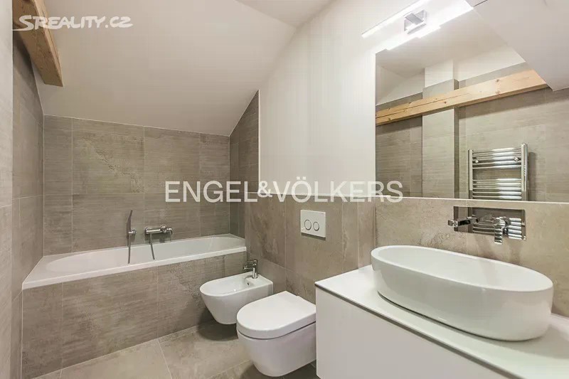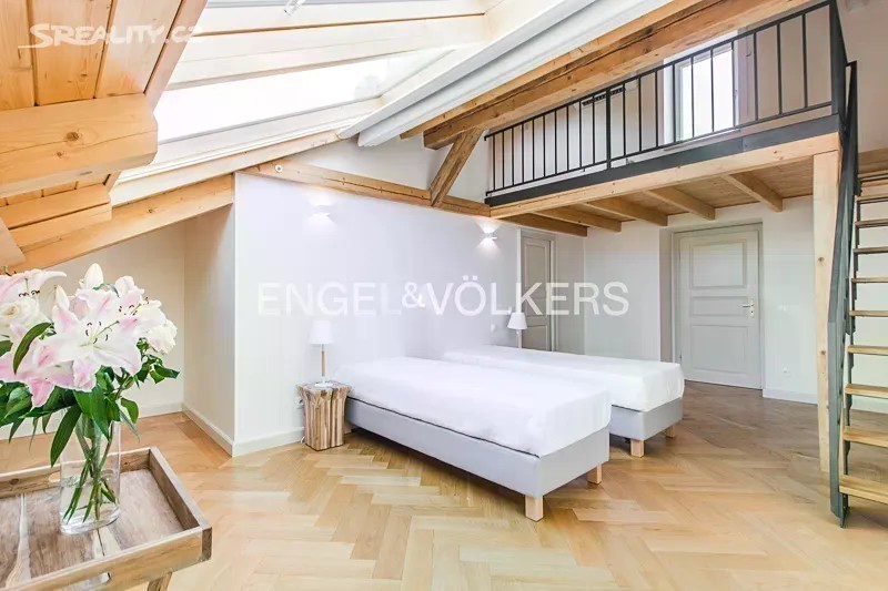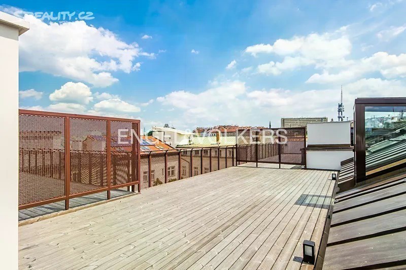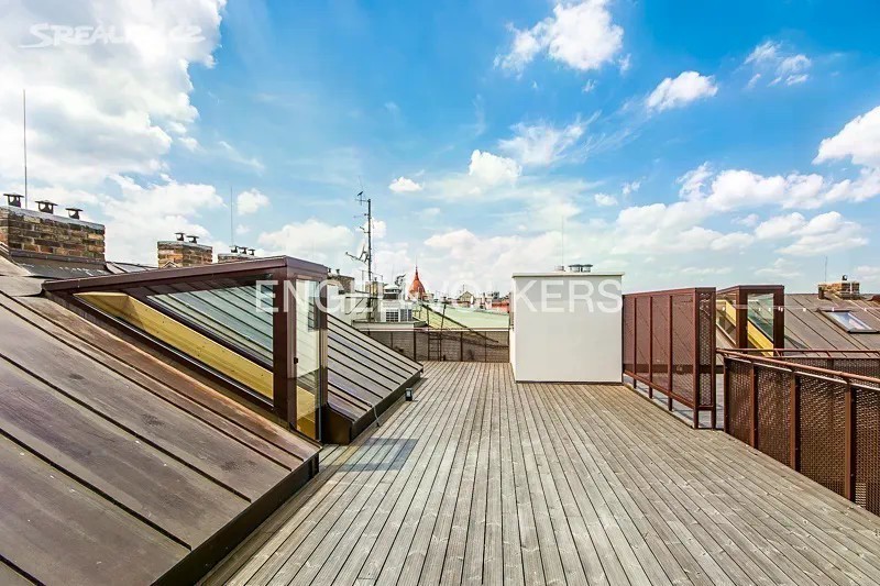 Velkolepě pojatý byt s okouzlující atmosférou. Byt se nachází v pátém nadzemním podlaží činžovního domu po kompletní rekonstrukci nejvyššího standardu. Zachované štukové stropy, dřevěné obložení, zámečnické prvky a další specifické prvky pro tento dům dohromady tvoří jedinečné umělecké dílo. K rekonstrukci byly použity výhradně kvalitní materiály. Ústřední místností tohoto jedinečného bytu je prostorný obývací pokoj s obnaženými trámy, který je propojený s jídelnou a kuchyní. Na míru vyrobená italská kuchyně s veškerými spotřebiči nabízí veškerý komfort moderního vaření. První ložnice orientovaná do tichého vnitrobloku je propojená s vlastní koupelnou a nabízí dostatek úložného prostoru. Prostorná koupelna se sprchovým koutem, toaletou a umyvadlem. Druhá ložnice s vlastní koupelnou a šatnou je unikátní díky dodatečné galerii se zajímavě řešeným střešním oknem. Moderní rodinná koupelna nabízí vanu, umyvadlo, toaletu a bidet. Dodatečná koupelna se sprchou je přístupná y obývacího pokoje. Střešní terasa o rozloze 63 m2 je ideálním místem k posezení s rodinou či přáteli. Celý byt je zařízený kvalitním italským nábytkem. Úložné prostory jsou řešené formou vestavěných skříní. Celoroční komfort nabízí podlahové topení v celém bytě a klimatizace. Přímo v domě se nachází kompletně vybavená posilovna přístupná všem nájemcům. V podzemních garážích je možnost si pronajmout parkovací stání. Centrální lokalita nabízí fantastickou dopravní dostupnost a nespočetné kulturní a volnočasové aktivity. Cena nájmu je uvedená bez poplatků. Majitel nesouhlasí s podpronájmem třetím osobám.