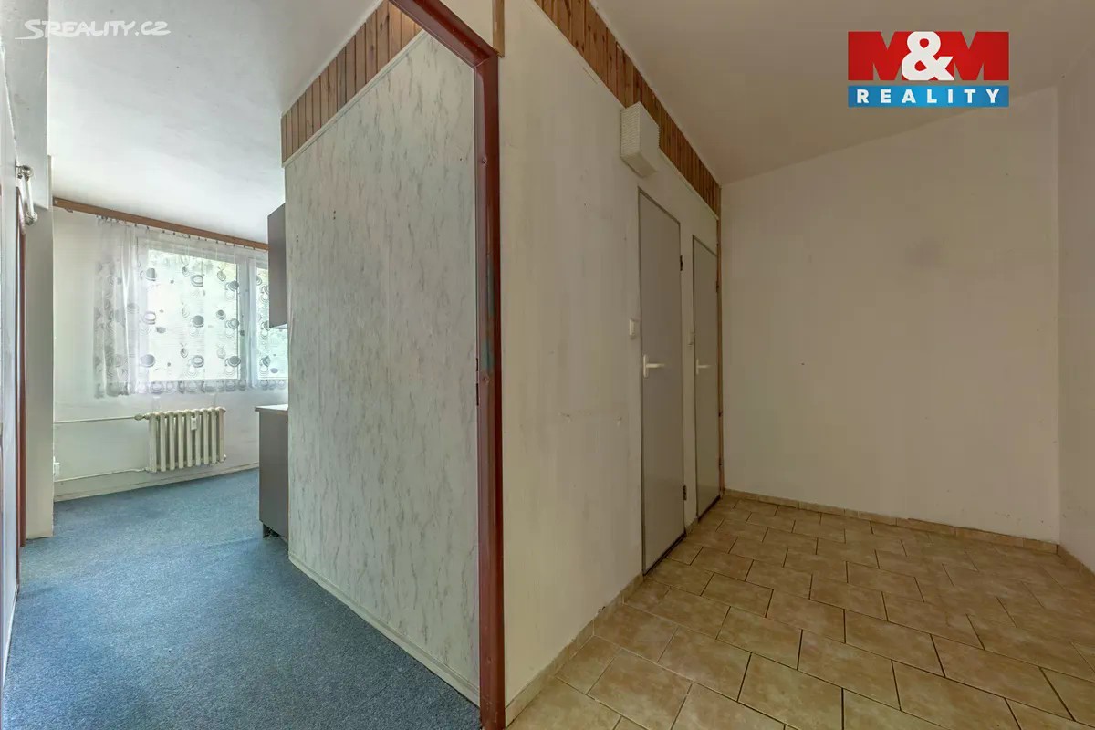 K prodeji je připravený menší byt pro pár nebo jednotlivce. Byt se nachází ve 3. patře panelového domu s výtahem. Nalevo od domu je velký park a napravo od vchodu do domu je ulice s obchody a službami. Jedná se o klidnou lokalitu se slušnými sousedy. Vlastní byt se skládá ze dvou místností, prostorné kuchyně s jídelnou a obytného pokoje. Výhled z obou pokojů je do zeleně směrem na jih. Vstupní chodba je dost velká, vejde se do ní skříň i botník. K bytu patří sklepní kóje a velkou výhodou je lodžie pouze pro tento byt. Ta je umístěná v mezipatře. Byt je vyklizený v původním stavu, bez zařízení, připravený na rekonstrukci podle vašich představ. Za velmi příznivou cenu získáte nemovitost ke klidnému bydlení na příjemném místě. Protože dům je zateplený, okna vyměněná a ekonomika správce v pořádku, čeká vás bydlení s nízkými náklady na služby i správu domu. Bližší informace vám podáme telefonicky nebo na místě během prohlídky.