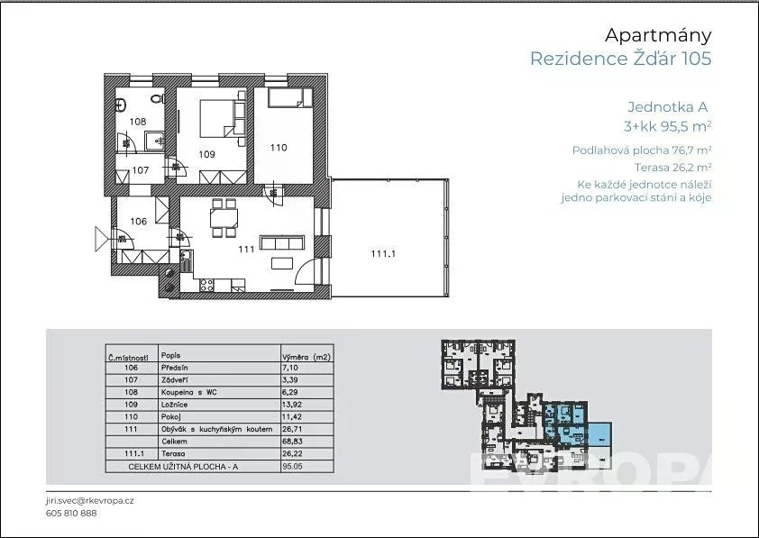 Život v srdci Jizerských hor - REZIDENCE ŽĎÁR právě v předprodeji, Albrechtice v jizerských horách V klidném údolí obklopeném lesy a zelenými loukami, 2 minut od Tanvaldského Špičáku, vzniká nový projekt REZIDENCE ŽĎÁR. Místo, kde každé ráno začíná výhledem do přírody, čistým horským vzduchem a pocitem, že jste přesně tam, kde chcete být. Nová rezidence nabízí 16 moderních apartmánů s výbornou dostupností - například z Prahy za 80 minut - zasazených do malebné přírody Jizerských hor. Jsou ideální pro celoroční pobyt i víkendový únik z města, kde si děti mohou bez starotí hrát venku a vy dýcháte čistý vzduch. V okolí vás čekají kilometry cyklostezek, trailových tras, běžkařské stopy doslova za rohem a sjezdovky Tanvaldského Špičáku vzdálené jen 3 minuty autem. Harrachov a Rokytnice nad Jizerou - do 30 minut. Skiareály Bedřichov, Severák, Paseky - snadno dostupné. Ať už hledáte místo pro aktivní život, rodinné zázemí nebo investici, Žďár 105 vás nadchne. Byt na investiřní pronájem lze kompletně předat mistnímu facility managementu. Zavolejte - společně vybereme v předprodeji ten pravý apartmán pro vás. Jedním z nejatraktivnějších bytů je Jednotka "A" 3+kk 95m² s velkorysou terasou 26,22 m² orientovanou do zahrady. Vzdušný obývací prostor s kuchyní navazuje na venkovní část, dvě neprůchozí ložnice a koupelna se zádveřím vytvářejí pohodlí pro rodinu, pár i náročnější klienty. Byt je umístěn v přízemí, má vlastní parkovací stání i sklepní kóji. Ve standardu jsou italská velkoformátová dlažba, dřevěné podlahy, sanita Laufen, bezpečnostní vchodové dveře. Dům je vybaven moderními technologiemi - vytápění i ohřev vody zajišťuje tepelné čerpadlo vzduch/voda StiebelEltron, spotřeba je měřena kalorimetry pro každý byt. Nechybí sauna s odpočívárnou, společenská místnost, lyžárna, kolárna na zahradě a připraveno je i místo pro venkovní bazén (rozhodnutí SVJ). Parkování je standardem - včetně přípravy na elektromobil. A když počasí nepřeje? V okolí máte aquapark v Jablonci, liberecký Babylon, restaurace, kavárny i galerie. Liberec i Jablonec jsou v dojezdové vzdálenosti 15-30 minut. Golfová hřiště Ypsilonka i Liberec také do 30 minut. Nový horský projet, byt, apartmán 3kk 95 m2, z toho terasa 26,2m2, vlastní parkovací stání, sklepní koje, wellnes, velká zahrada, lyžárna, vlek i běžecké stopy, cyklostesky i turistické trasy. REZIDENCE ŽĎÁR - horský domov, který vám dá víc než jen prostor. Dá vám nový životní rytmus.