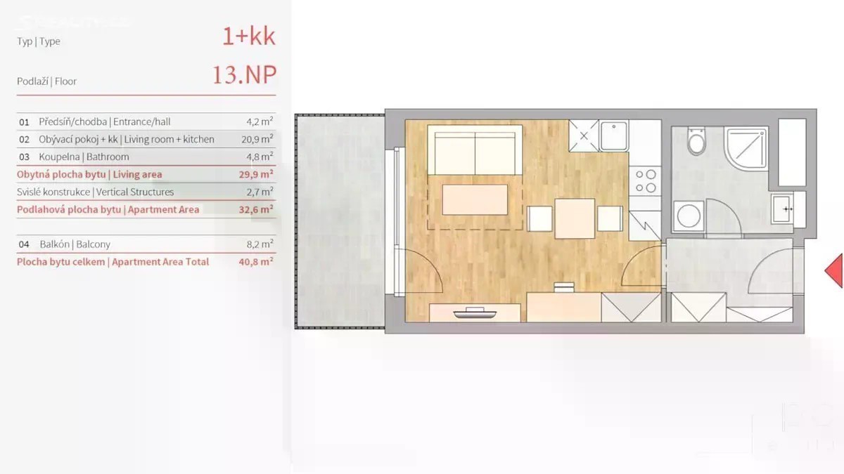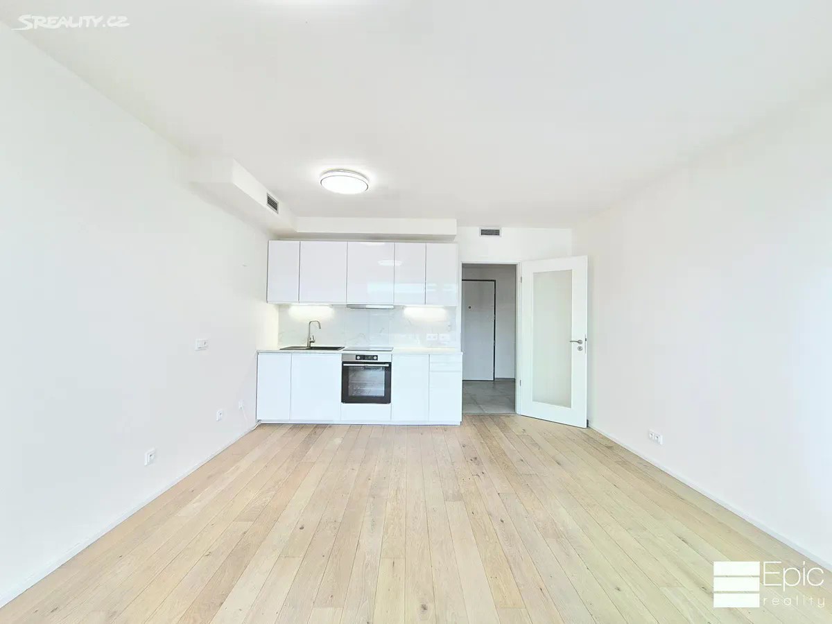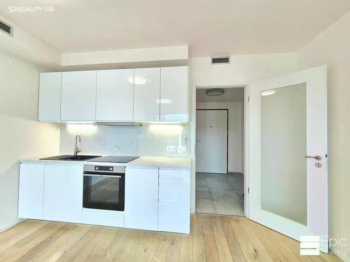 Nabízíme k dlouhodobému pronájmu moderní byt 1+kk (32,6 m) s prostorným balkonem 8,2 m, který se nachází ve 13. patře novostavby projektu Zahálka, ulice Mezi Vodami, Praha 4 Modřany. Byt tvoří světlý obývací pokoj s kuchyňským koutem, koupelna se sprchovým koutem a toaletou a vstupní chodba s místem pro vestavěné skříně. K bytu lze pronajmout také sklepní kóji (cca 6 m2) za 1 500 Kč/měs a parkovací místo v domě za 1500,-/měs. Byt je orientován na západ, má velká okna s výstupem na balkon a nabízí krásný výhled do zeleně. Kuchyňská linka je vybavena vestavěnými spotřebiči, v bytě jsou kvalitní podlahy a koupelna v moderním designu. Velkou výhodou jsou i předokenní rolety, který zvýší tepelný komfort v bytě. Rezidenční projekt Zahálka nabízí klidné a moderní bydlení u řeky Vltavy, v sousedství golfového hřiště Hodkovičky a cyklostezky A2. V okolí je kompletní občanská vybavenost obchody, kavárny, restaurace, školy, školky i fitness centra. Tramvajová zastávka Belárie je 5 minut chůze, vlakové nádraží PrahaModřany v docházkové vzdálenosti. Do centra Prahy se dostanete za 20 minut. Nájemné: 19 500 Kč/měs. Zálohy na služby: 1 580 Kč/měs. Sklep (volitelně) : 1 500 Kč/měs. Parkovácí stání (volitelně) : 1500,- Kč Vratná kauce: 35.000,- Kč Elektřina se přepisuje na nájemce Provize RK 21.000,-Kč Byt je ihned k nastěhování. Vhodné pro jednotlivce nebo pár, kteří hledají stylové a klidné bydlení s výbornou dostupností do centra.