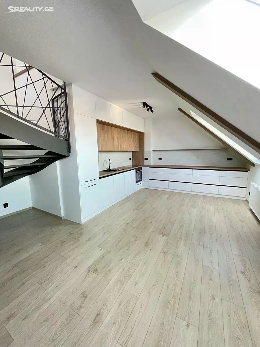 Zkuste něco nového. Dovolujeme si Vám k pronájmu nabídnout atypické, luxusní bydlení v mezonetovém bytě 4+kk, 128 m2 + terasa 20 m2, po kompletní rekonstrukci. Vše je zcela nové, vkusné, nepoužívané. Byt se nachází v 5. patře šesti podlažního domu s výtahem. Přes předsíň se vstupuje do prostorného pokoje se schodištěm a plně zařízenou kuchyňskou linkou ( indukční varná deska, elektrická trouba, lednice s mrazákem, pračka ). V prostoru je dostatek místa pro jídelní a obývací část. Dále je ve spodní části umístěna samostatná toaleta s umyvadlem do které je vstup z předsíně. Horní část bytu nabízí tři samostatné ložnice, koupelnu a terasu. Ve vkusné koupelně je sprchový kout, vana, umyvadlo a druhé WC. Na terasu s krásným výhledem je vstup ze dvou ložnic. V každé ložnici jsou umístěny praktické vestavěné skříně. Na podlaze je kvalitní plovoucí lamino a dlažba. K vytápění a ohřevu vody slouží plynový kotel. V bytě je též alarm. Jedná se o lokalitu s plnou občanskou vybaveností, kousek od vlakového nádraží Vršovice a docházkovou dostupností do centra. Pár minut od domu je krásný park Grébovka nebo Folimanka. Byt je připravený k nastěhování, srdečně vás zveme na prohlídku. Cena nájmu 55.000 Kč Záloha na služby 1.800 Kč/jedna osoba Další osoby 800 Kč Kauce dva nájmy Provize jeden nájem