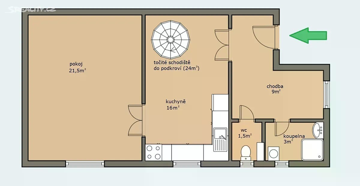 Nabízíme k pronájmu prostorný a světlý mezonetový byt o dispozici 3+kk a celkové výměře 75 m², který se nachází v 1. patře zděného bytového domu v samém centru města Kralupy nad Vltavou. Byt má velmi příjemné uspořádání. Ve spodním patře se nachází velká vstupní chodba s okny do ulice, koupelna se sprchovým koutem, samostatná toaleta a kuchyň s kompletně novou kuchyňskou linkou včetně spotřebičů, vyměněnou v létě 2024. Z kuchyně je přímý vstup do rozlehlého obývacího pokoje nebo na točité schody vedoucí do podkroví. V patře se nachází prostorná ložnice, která díky svému umístění poskytuje dostatek soukromí. Podlahové krytiny tvoří PVC a dlažba, vytápění je zajištěno vlastním elektrokotlem. Byt se nachází na atraktivním místě v centru města, v blízkosti je kompletní občanská vybavenost - obchody, školy, školky, restaurace i zastávky autobusů a vlakové nádraží. Kralupy nad Vltavou mají výbornou dopravní dostupnost, do Prahy se dostanete přibližně za 20 minut. Měsíční nájemné činí 14.700 Kč. Poplatky + elektřina bude přepsána na nájemce. Vratná kauce činí 29.400 Kč, provize RK. Byt bude volný od 1.12.2025 (po dohodě možná i dříve) Pro více informací nebo sjednání prohlídky kontaktujte makléře.