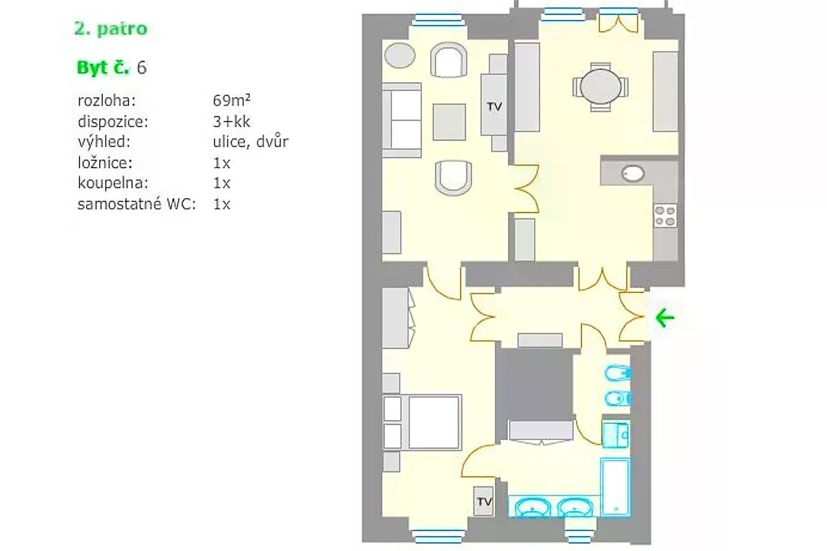 Luxusní, kompletně zařízený, velmi světlý byt 3+kk, 76,80 m2, 2. patro s výtahem v luxusně zrekonstruovaném reprezentativním secesním domě v samém srdci Prahy nedaleko Staroměstkého náměstí a nábřeží Vltavy, Truhlářská, Praha 1 - Nové Město. V bytě je vstupní hala s úložnými prostory, plně vybavená kuchyně s jídelním koutem (digestoř, sporák, pečící trouba, myčka, lednice, veškeré nádobí a sklo), 2 neprůchozí ložnice s TV (1 ložnice, obývací pokoj), koupelna s vanou, toaletou, bidetem a pračkou. Celý apartmán je vybaven stylovým nábytkem na míru. Na podlahách kvalitní dřevěné parketové podlahy v kombinaci s dlažbou. K dispozici TV, SAT, WIFi, alarm, videotelefon, bezpečností dveře. V domě security systém. U domu veškerá občanská vybavenost, OC Palladium, metro Náměsí Republiky, linie B či v dosahu tram.linek. Nájem 1 600 Eur/měsíc. Fixní poplatky včetně energií 550 Eur/měs. + DPH. Vratná kauce 2 měsíční nájmy. Minimální doba nájmu 6 měsíců. Volný ihned.