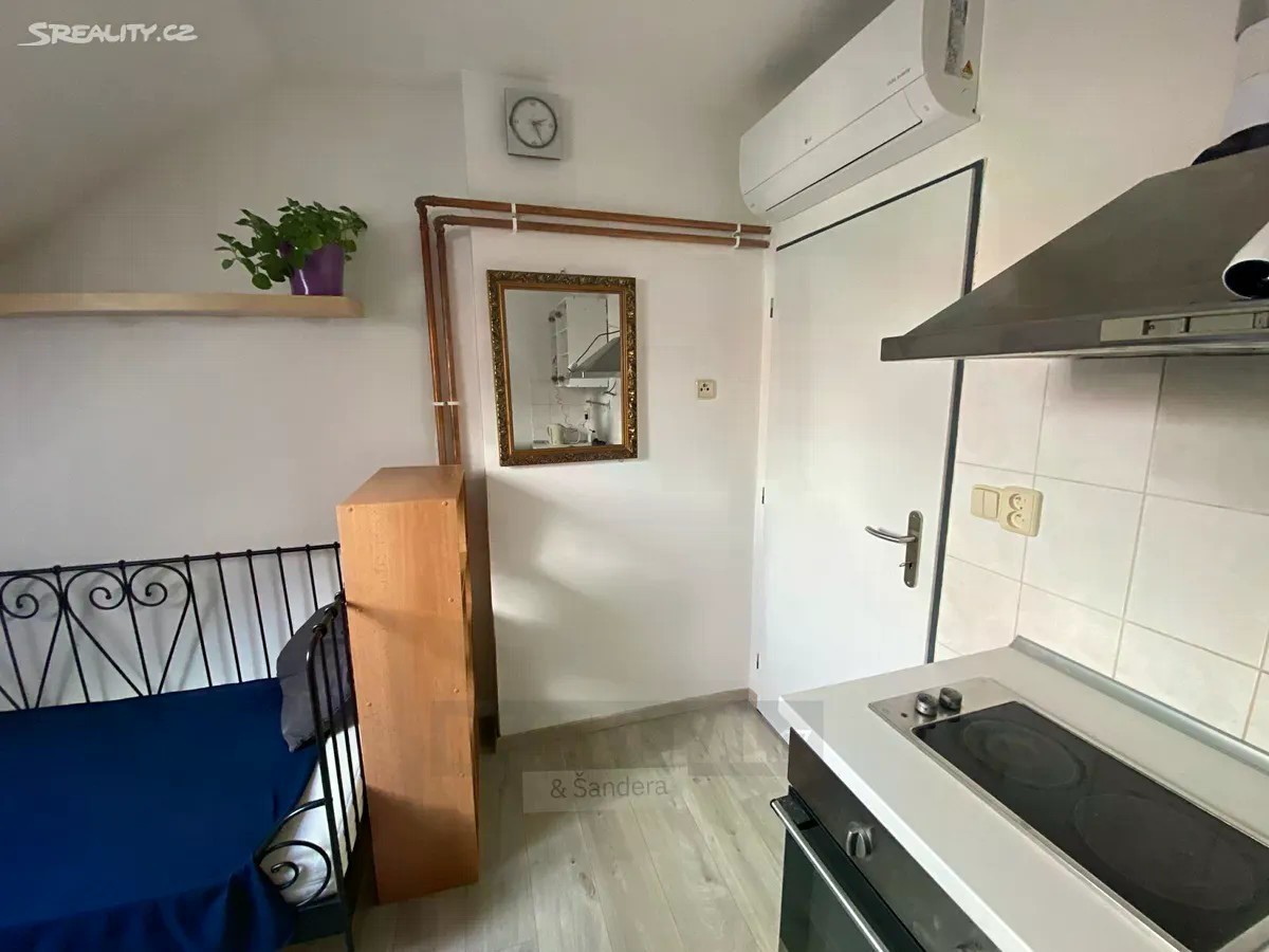 Nabízíme k pronájmu podkrovní byt o dispozici 1+kk v bytovém cihlovém domě v ulici Mánesova v Českých Budějovicích. Byt je velmi strategicky umístěn s docházkovou vzdáleností do centra města. V okolí naleznete veškerou občanskou vybavenost. Parkování je možné před domem na modrých zónách za roční poplatek. Výměra bytu je 22 m2 a nabízí vstupní chodbu se šatní skříní, koupelnu se sprchovým koutem, toaletou a obývací místnost s kuchyňskou linkou. Byt je vybaven klimatizací pro komfort v zimních i letních měsících. Možnost využití společné prostorné zahrady ve vnitrobloku k relaxu, grilování, posezení či případnému pěstování. Měsíční náklady bytu jsou stanoveny na 2 000,- + elektřina (přibližně 1000,-/měsíc). Vratná kauce ve výši dvou měsíčních nájmů. Provize realitní kanceláři ve výši jednoho měsíčního nájmu + 21% DPH. Doporučujeme osobní prohlídku.