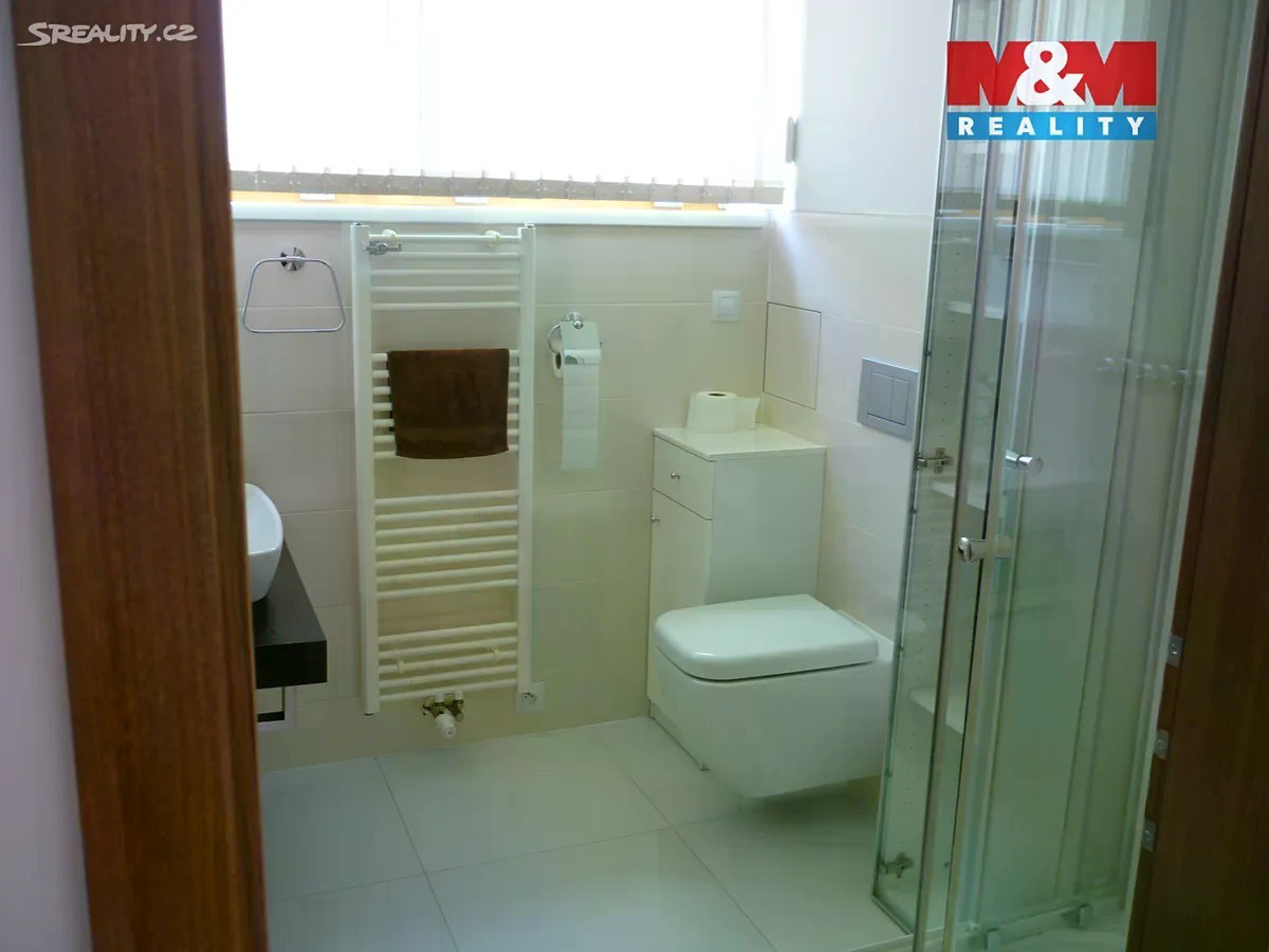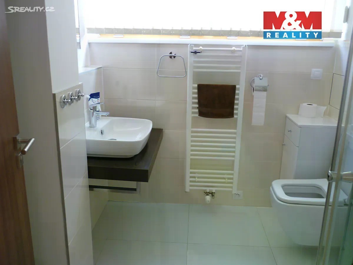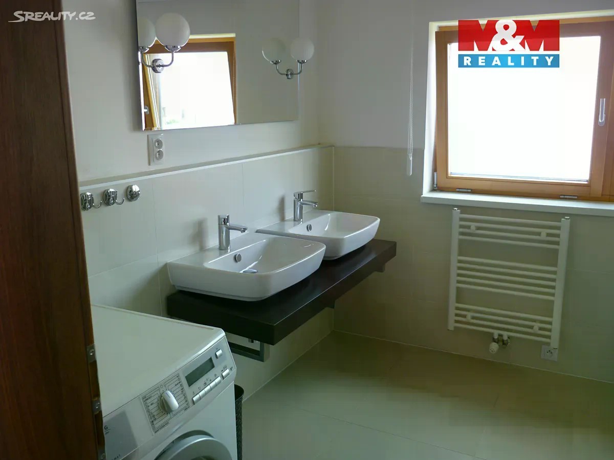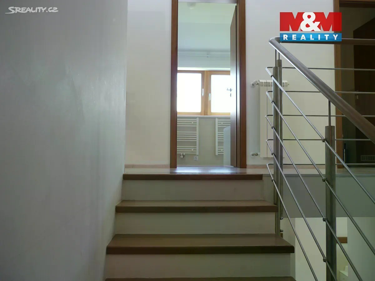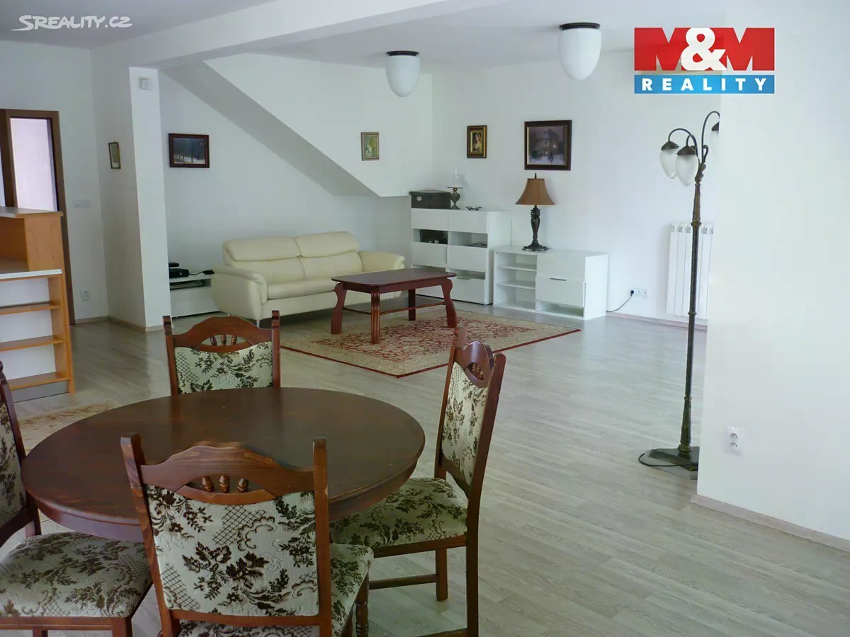 Nabízíme k pronájmu atraktivní, úsporný rodinný dům, 5+kk, 200 m2, zahrada 670 m2, se 2 koupelnami, nedaleko dvou přírodních rezervací. Příjemná rezidenční lokalita s kompletní občanskou vybaveností. V těsné blízkosti se nachází jezdecký klub a dětské hřiště, dále cyklostezky. Krátký dojezd autem k centru Modřan a 30 min do centra Prahy. Přízemí domu je tvořeno obývacím pokojem s kuchyní, vybavenou veškerými spotřebiči, lednicí a barovou chladničkou, dále jídelním prostorem, šatnou, komůrkou, koupelnou se sprchovým koutem a WC, vstupem na zahradu a garáží. Patro domu se skládá ze 3 ložnic a samostatné pracovny, koupelny s vanou, samostatného WC a schodišťové haly. V domě je klimatizace. Samostatnost domu s rozlehlou oplocenou zahradou zaručuje maximální soukromí. V zahradě je místo na posezení a grilování, velké vyžití pro děti - k dispozici houpačky a trampolína. Dům je elektronicky zabezpečen. Měsíční nájemné 62 000 Kč, dále provize RK, energie si platí nájemník.