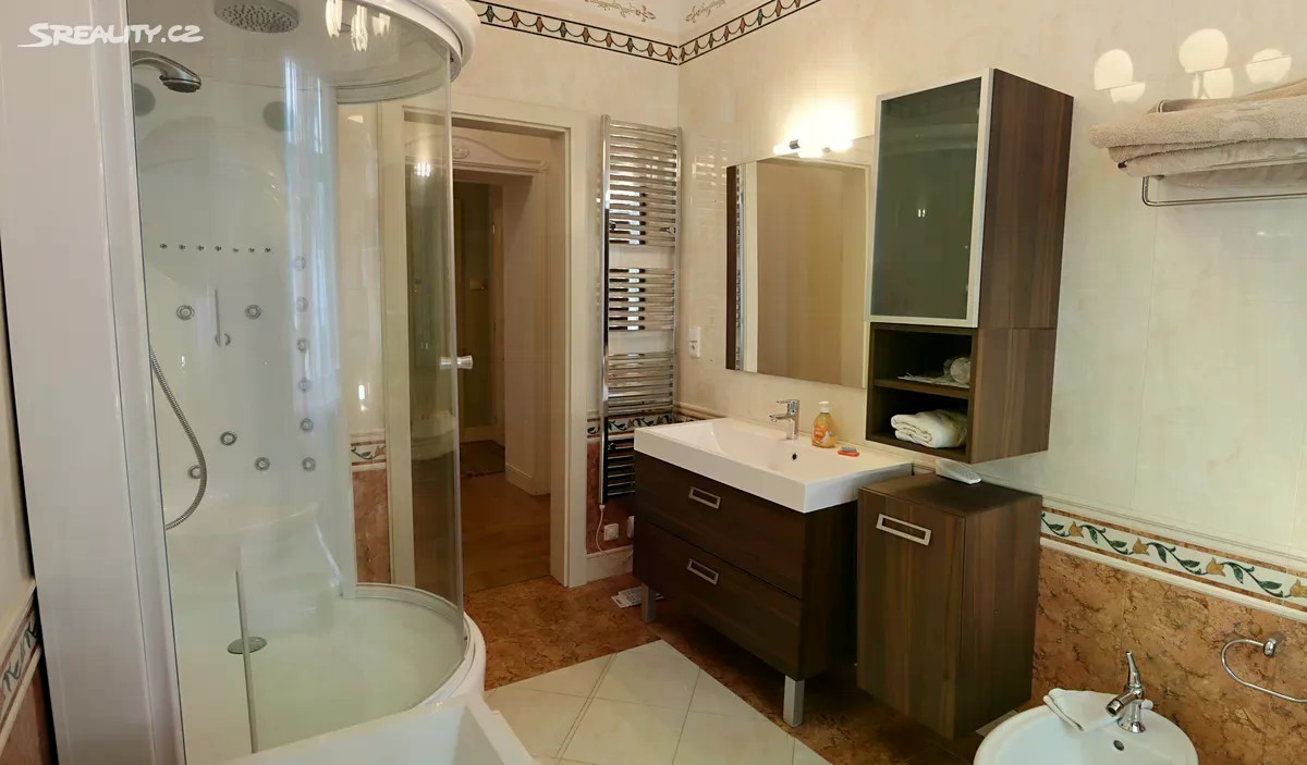 Exkluzivně představujeme jedinečnou nabídku prodeje luxusního bytu o celkové podlahové ploše 140,46 m², situovaného v prestižní vile „UHL - BREINIG“ na vyhlídce v Karlových Varech. Tato elegantní rezidence kombinuje historický půvab s moderním komfortem, nadstandardními materiály a soukromím, které je v této části města skutečnou vzácností. Byt se nachází ve výjimečně udržovaném stavu a byl navržen s důrazem na kvalitu, detail a nadčasový design. Dominantou interiéru jsou na míru vyráběné dřevěné parkety, které dodávají prostorům noblesu a teplo. Díky promyšlené dispozici čtyř samostatných pokojů, prostorné kuchyně s jídelnou a dvou koupelen byt poskytuje ideální zázemí jak pro rodinné bydlení, tak pro reprezentativní rezidenci. Součástí jednotky je také balkon o výměře 5,77 m², který nabízí klidné posezení s krásným výhledem. Skutečným bonusem je však vlastní pozemek o rozloze 164 m² (parcela č. 109/3), přístupný přímo z bytu po kovovém schodišti - ideální pro soukromou zahrádku, relaxační zónu nebo letní posezení. Balkon, ani pozemek, se nezapočítává do celkové podlahové plochy jednotky. Každý detail této nemovitosti byl pečlivě promyšlen a zpracován s ohledem na pohodlí a reprezentativnost. Kombinace vysokých stropů, kvalitních materiálů, velkorysé podlahové plochy a soukromého venkovního prostoru tvoří harmonický celek, který uspokojí i ty nejnáročnější zájemce.