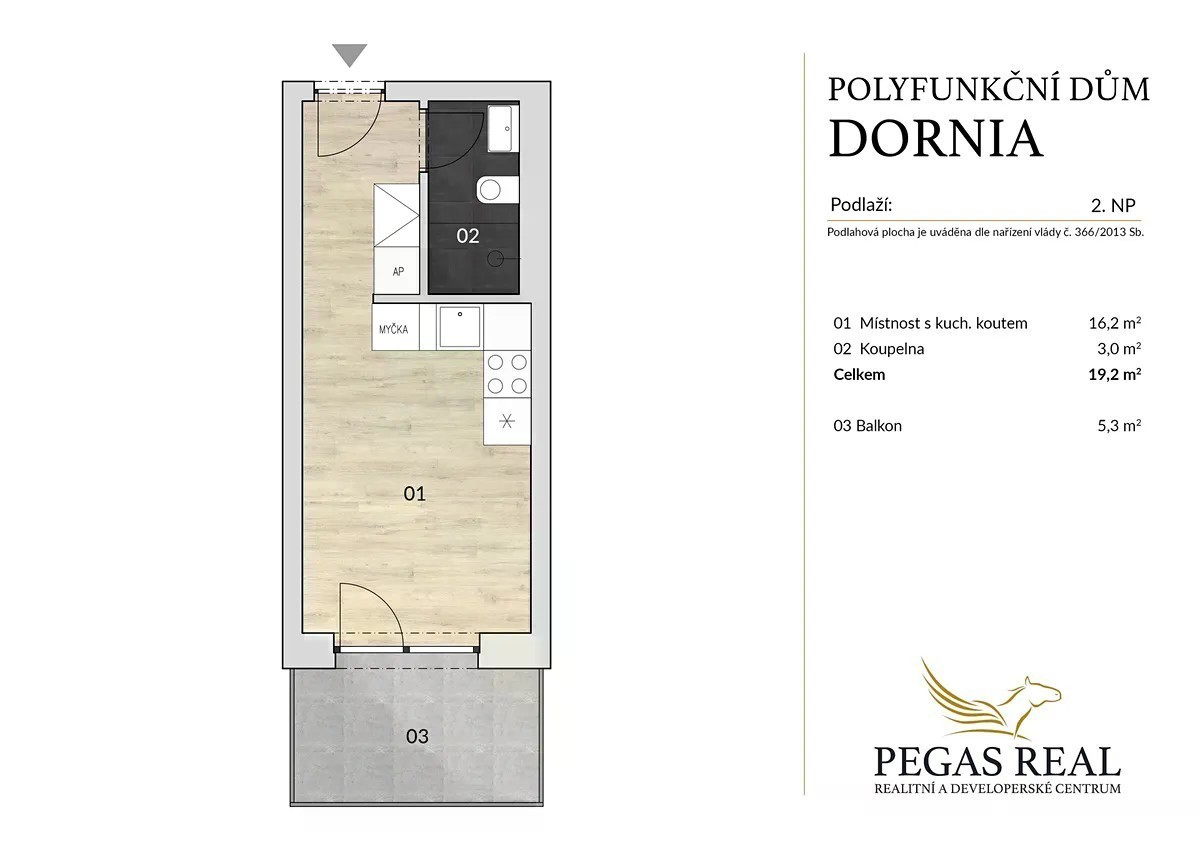 Hledáte pronájem moderního, kompletně zařízeného bytu v klidné lokalitě, ale s dobrou dostupností všech výhod, které město nabízí? Právě pro Vás máme na pronájem hezký byt s dispozici 1+kk s balkonem nacházející se v novostavbě bytového domu DORNIA. Bytový dům je vybaven výtahem. Je zasazen do vnitrobloku a odkloněn od ruchu města. Celková výměra bytu činí 19,2 m2 + balkon 5,3 m2. Z obytného prostoru je vstup na krytý balkon, směřující na jihozápad. Je orientovaný do klidného a zeleného vnitrobloku okolních budov. Na pronájem se byt nabízí jako kompletně zařízený a vybavený nábytkem z fotek. K dispozici je na míru dělaná kuchyňská linka s lednicí, myčkou, mikrovlnnou troubou, dřezem, digestoří a varnou deskou. Dále je zde jídelní stůl, dvě židle, sedačka, vestavěné skříně a úložné systémy v předsíni a v obytném prostoru, pračka se sušičkou a předsíňový nábytek. Velice prakticky je řešena výklopná postel (140 cm), kterou je možné jednoduše rozložit a složit tak, aby nezabírala místo. Okna bytu jsou vybavena elektricky ovladatelnými venkovními žaluziemi. Nájem činí 13.900 Kč + 1.502 Kč zálohy za služby a energie (voda, teplá voda, teplo) + vlastní spotřeba elektrické energie a internet. Vratná kauce je v hodnotě 35.000 Kč. Provize RK je jedna měsíční platba + DPH. V případě zájmu je možný pronájem garážového stání za cenu 2.500 Kč měsíčně přímo v budově. Byt v sobě propojuje klidné bydlení s dobrou dostupností centra města. V okolí je k dispozici tramvajová zastávka, dostupná je Galerie Vaňkovka nebo nově vybudovaný areál Vlněny, restaurace, potraviny, fitness centra a mnoho dalšího. Byt je k dispozici ihned. Těším se na Vás na prohlídkách.