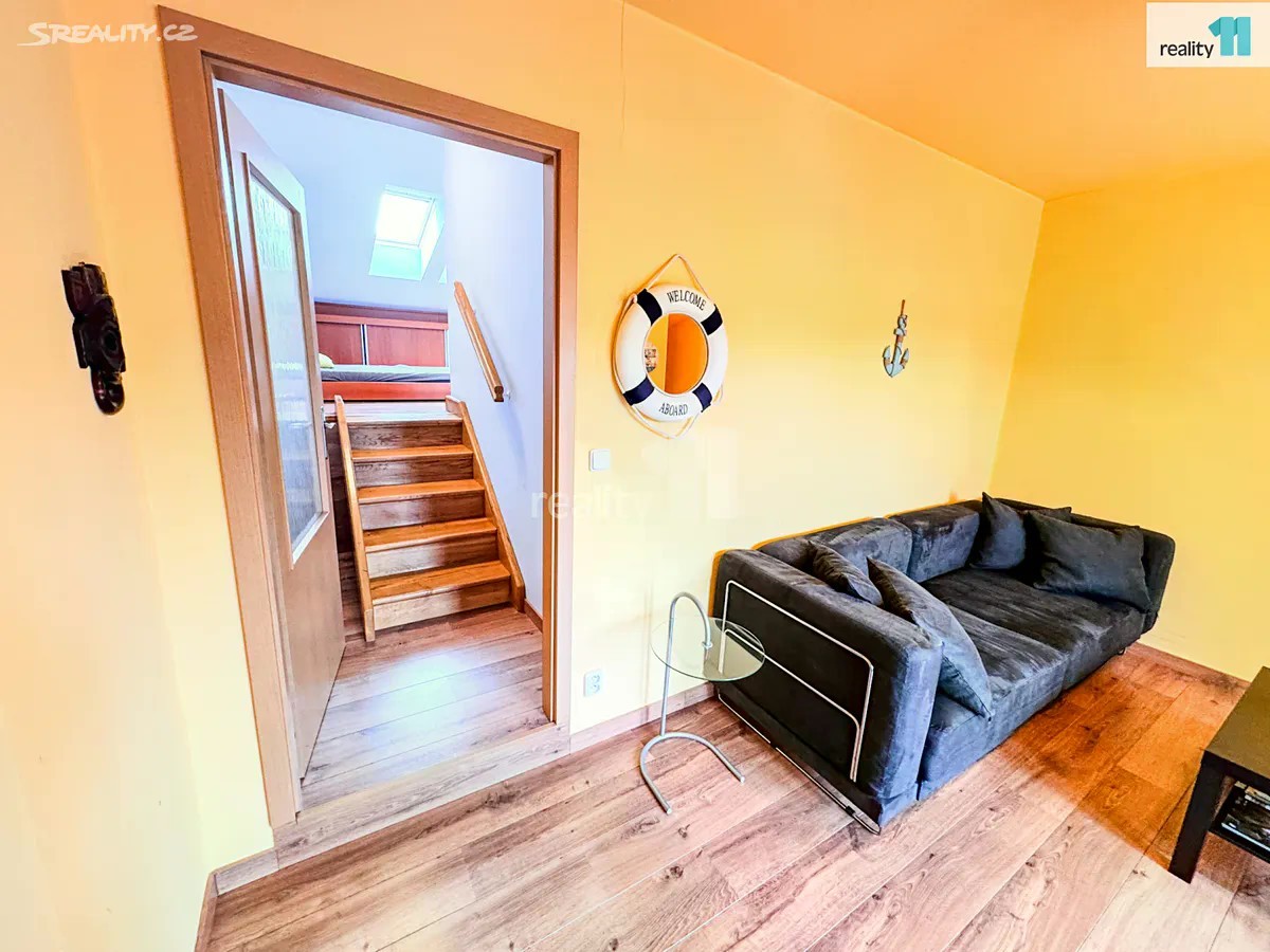Prodej podkrovního bytu 2+1 s lodžií a dvěma parkovacími stáními u Slapské přehrady Nabízíme k prodeji podkrovní byt 2+1 v osobním vlastnictví, který se nachází v klidné části obce Ždáň, na břehu Slapské přehrady, přibližně 40 km od Prahy. Byt o dispozici 2+1 je situován ve 3. patře cihlového domu bez výtahu. Díky umístění v podkroví poskytuje dostatek soukromí a klidu. Prodává se včetně kompletního vybavení na míru, které je součástí kupní ceny. Je tedy možné byt ihned využívat k rekreaci, pronájmu nebo trvalému bydlení. Dispozice bytu: - kuchyně - kuchyňská linka s kompletním vybavením (lednice s mrazákem, trouba, varná deska, myčka, digestoř, gril, nádobí, jídelní stůl a židle) - obývací pokoj vybavený rozkládací pohovkou a nábytkem, lodžie s výhledem do zeleně - ložnice vybavená postelí, TV, stolkem a skříněmi vyrobenými na míru do těchto prostor - koupelna s umyvadlem, sprchovým koutem a el. bojlerem na ohřev vody - samostatné WC - předsíň K bytu náleží sklepní kóje v přízemí. Vytápění zajišťují elektrické přímotopy, ohřev vody elektrický bojler. Měsíční náklady činí přibližně 2 100 Kč (fond oprav 1222,- Kč + voda, odpad, správa domu, úklid, internet aj.) + zálohy na elektřinu v bytě. K bytu náleží dvě parkovací stání na oploceném pozemku s posuvnou bránou na dálkové ovládání. Bytový dům se nachází asi 200 m od veřejných pláží. Nedaleko domu se nachází přístaviště s lodní linkou do Měřína a na Živohošť, Yacht Club Ždáň, tenisové kurty a také golfové hriště s 18 jamkami - Golf Park Slapy (cca 2 km). Okolí je vhodné pro odpočinek, cyklistiku, turistiku, vodní sporty a rybaření. Byt je ideální pro rekreaci, investici nebo jako trvalé bydlení v klidné lokalitě s dobrou dostupností do Prahy. Pro více informací a sjednání prohlídky kontaktujte makléře. Pomůžeme Vám se zajištěním hypotečního úvěru. Ev. číslo: 27827.