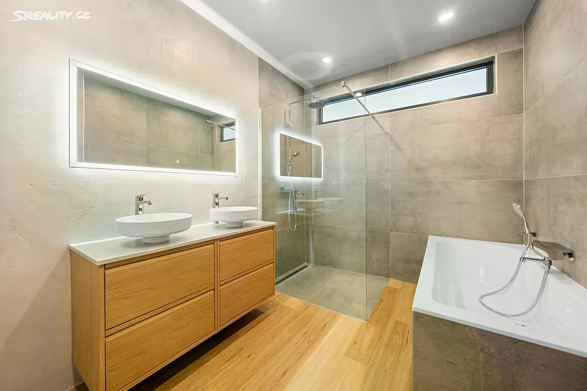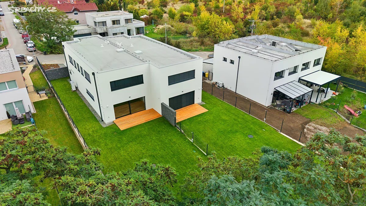 Jsem přímý majitel a nabízím exklusivní, zkolaudovanou (10/2025) mezonetovou bytovou jednotku o dispozicích 5+kk s garáží, terasou a třemi koupelnami. Užitná plocha je 243 m2 včetně terasy. Byt je kompletně dokončený a připravený k nastěhování. V celém bytě (včetně garáže) je podlahové vytápění s možností chlazení, napojené na úsporné tepelné čerpadlo zn. BOSCH (s topným faktorem COP 4,3). Ovládání kondenzačního kotle, žaluzií a garážových vrat lze provádět pomocí aplikace z chytrého telefonu systémem elektronické domácnosti TaHoma Somfy, s možností přidání nepřeberného množství příslušenství a vytvoření tak uceleného systému inteligentní domácnosti. Okna mají ALU rámy a izolační trojsklo s dodatečnou hlukovou a tepelnou izolací a předokenní hliníkové žaluzie. Na podlahách je vinylová plovoucí podlaha. Kombinací skleněných dveří se skleněným zábradlím na schodišti, velkých oken a betonových stěrek jsme dosáhli moderního vzdušného interiéru. V domě se nachází dvě bytové jednotky a vše mají oddělené a samostatné. Dispozice: 1NP: zádveří, technická místnost, koupelna se sprchovým koutem a WC, komora, chodba se schodištěm, obývací pokoj s KK a vstupem na terasu, garáž. 2NP: 4 ložnice, komora, druhá koupelna s vanou i sprchovým koutem a WC, hala se světlíkem, třetí koupelna se sprchovým koutem a WC. Nezastavěná plocha domu náležící k bytu je rozdělena na 3 části: Zpevněná přístupová plocha před domem s místem pro parkování 3 vozidel, oddělená od zahrady gabionovým plotem a brankou. Travnatá plocha s automatickým závlahovým systémem napojeným na nádrž na dešťovou vodu o objemu 2500l. Systém s automatickým dopouštěním z vodovodního řádu v suchých obdobích zaručí krásný zdravý trávník po celou letní sezónu. Dřevěná terasa ze Sibiřského modřínu s přímím vstupem z domu přes posuvné dveře (HS Portál) přímo z velkolepého prostoru obývacího pokoje (50m2). Hlavní a nadstandartní prvky: - Skleněné prvky (zábradlí a dveře) - Velká okna s trojskly a ALU rámy - Betonové stěrky - Předokenní ALU žaluzie se systémem Tahoma Somfy - HS Portál ALU o šířce 460 cm (1/2 otevírací) - Terasa ze sibiřského modřínu s výhledem na zahradu a les - Gabionové ploty - Automatická závlaha trávníku - Rekuperace ZEHNDER s entalpickým výměníkem - Úsporné TČ BOSCH - Podlahové vytápění Top Heating s doživotní zárukou - Kamerový systém a domofon HIKVISION - Světlík Velux - Zabezpečovací systém Jablotron s napojením na PCO a HLAVNĚ - KVALITNĚ PROVEDENÁ ŘEMESLNÁ PRÁCE. Energetická náročnost budovy je ve třídě A - Mimořádně úsporná Byt se nachází v klidné části okraji obce Horoměřice, v zástavbě moderních rodinných domů, 5 km od letiště Václava Havla, 9 minut autobusem na stanici metra Bořislavka, 30 minut od centra Prahy. V obci Horoměřice je rozsáhlá občanská vybavenost. Nachází se zde mateřské školky, základní škola, obchodní centrum, Lidl, několik restaurací, kavárna, praktičtí a zubní lékaři, autoservis, zařízení sportovního vyžití atd. Poloha bytu je na výborném místě. Zahrada náležící k bytu je orientována jihozápadně a směřuje do vzrostlých stromů, odkud se po cestičce dostanete do blízkého lesa. Tento dům o dvou bytových jednotkách je v pořadí již čtvrtý, který jsme postavili. První 2 domy jsou k nahlédnutí pod odkazem "Přejít na web". Celou stavbu jsme osobně připravovali a dozorovali průběh neustálou přítomností na stavbě. Pro vážné zájemce máme z průběhu stavby rozsáhlou foto a videodokumentaci umístěnou v časovém sledu v soukromé skupině na Facebooku. Nabízíme individuální přístup při jednání. Nejsme vázání pravidly jako developerské společnosti. Dále mohu zprostředkovat setkání s vlastníky, kteří od nás domy zakoupili k získání relevantní zpětné vazby. Pokud Vás prezentace zaujala, zavolejte mi a domluvme si osobní prohlídku, kde Vám mohu sdělit více podrobností včetně unikátního modelu financování a velmi rychlé možnosti nastěhování.