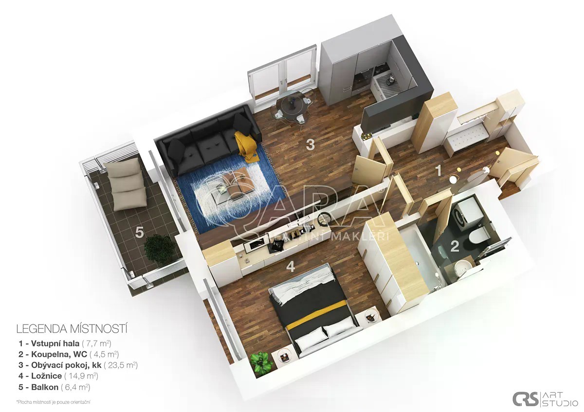 Byt Alaina Delona je překvapivě k pronájmu. Pronajmu svůj krásný byt slušnému nájemníkovi, který ocení jeho kvality a polohu. Byt v 1. patře má dispozici 2+kk a plochu 52,9 m2. Patří k němu i balkón, sklep a vlastní parkovací místo přímo pod balkónem. V ložnici jsou předokenní žaluzie. Plochy jednotlivých místností jsou následující: * chodba 7,7 m2 * obývací pokoj s kuchyňským koutem 23,5 m2 * ložnice 14,9 m2 * koupelna s WC 4,5 m2 * balkón 6,4 m2 * sklep 2,2 m2 Je 5 let starý a ve výborném stavu. Část vybavení přenechám nájemníkovi (vystavené láhve určitě ne.) - skříně v chodbě, nástěnné zrcadlo, botník na zdi, kuchyňská linka se spotřebiči (lednice, mrazák, myčka, trouba, sporák, mikrovlnná trouba), v ložnici šatní skříň, dvoulůžko bez matrací, noční stolek, poličky na zdi, nástěnné zrcadlo a v obývacím pokoji nábytkovou stěnu, skleněný stolek se 4 židlemi a taburet. Kromě nájmu bude platit nájemník zálohy na energie a služby (nepřevádí se) celkem 5 500 Kč. Pouze internet si pořeší sám (jsou zde optické kabely od O2). Byt je k dispozici od prosince 2025. Dvouměsíční kauce, neplatíte provizi RK. Vysoký Újezd je jen 10 minut autem od metra Zličín nebo Berouna. Je vyhlášen golfovým rezortem Albatross (asi 300 metrů) a také kvalitní gastronomií - pár metrů od bytu najdete italskou restauraci La Locale s výbornou neapolskou pizzou nebo zážitkovou restauraci Papilio s šéfkuchařem Janem Knedlou. A brzy se snad dočkáte otevření wellness hotelu v těsném sousedství. I širší okolí má co nabídnout - lom Velká Amerika, Karlštejn a Český kras, přírodní park Povodí Kačáku, Brdy, Berounka atd.