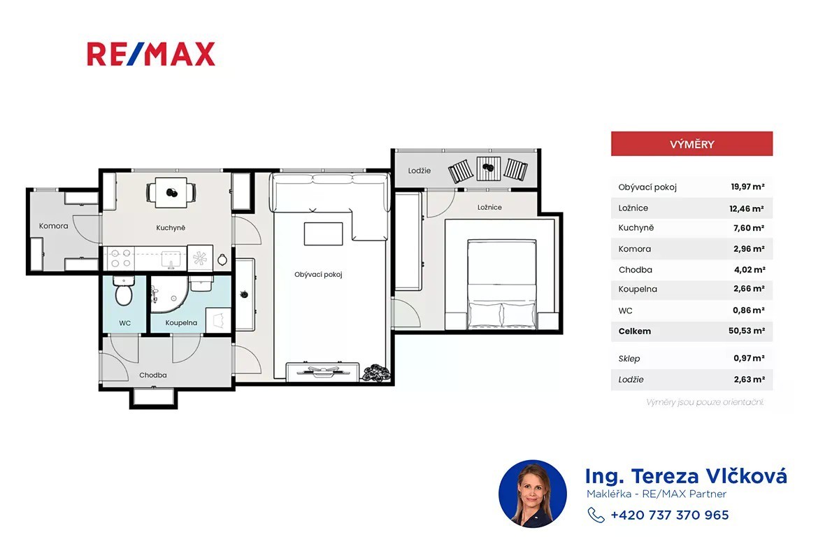 Byt 2+1 s lodžií a komoru na třídě T. G. Masaryka, Mladá Boleslav Hledáte byt v klidné a přitom skvěle dostupné části Mladé Boleslavi? Byt 2+1 s celkovou výměrou 53,2 m² včetně lodžie a sklepní kóje se nachází v revitalizovaném domě, o který je v posledních letech pečováno s láskou a péčí. Dům prošel řadou úprav - nový výtah, vyměněné stoupačky, nová elektřina, podlahové krytiny na chodbách. Aktuálně probíhá výmalba a renovace společných prostor, vše hrazené z fondu oprav. Revitalizací prošlo také okolí domu - byla položena nová dlažba a vysázena nová zeleň. V blízké době je v plánu osazení domu solárními panely. Byt je světlý, s praktickou komorou a lodžií. Kuchyně je vybavena udržovanou kuchyňskou linkou, obývací pokoj nabízí dostatek prostoru pro rodinné posezení. Ložnice je klidným místem s výhledem na město. Koupelna má zděné jádro, kuchyně i koupelna prošly renovací přibližně v roce 2005. Elektroinstalace v bytě jsou původní. Byt je však celkově ve velmi pěkném stavu a připraven k okamžitému bydlení. K bytu náleží sklepní kóje. Vytápění a ohřev vody jsou řešeny dálkově. Okna jsou plastová. Uvedené výměry vychází z Prohlášení vlastníka budovy. Bezprostřední okolí domu nabízí vyžití pro celou rodinu - najdete zde dětské hřiště i kulturní dům. Mladá Boleslav nabízí všechny služby, které k životu potřebujete - školy, školky, obchody, lékaře i městskou dopravu, jejíž zastávka je nedaleko domu. Koupí tohoto bytu získáváte nejen krásné místo k bydlení, ale i jistotu skutečně chytré investice. Prohlídku mohu jen doporučit. Prohlídky proběhnou 27.10. Prosím o reakci přes kontaktní formulář - ozvu se vám zpět a domluvíme Váš čas prohlídky. Těším se, že vás zde osobně provedu. Ing. Tereza Vlčková | realitní makléřka