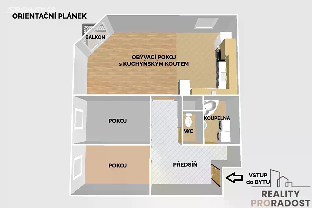 Ve výhradním zastoupení majitele Vám nabízíme k prodeji byt 3+kk o celkové užitné ploše 74,3 m2 (včetně balkónu), nacházející se v 1. patře (2.NP) cihlového domu na ulici Schweitzerova v Olomouci. Jedná se o atypický bytový dům z roku 2004, s nízkými provozními náklady. Byt nabízí příjemnou dispozici - z prostorné předsíně (11,5 m2) se střešním oknem jsou vstupy do všech místností bytu. Centrem bytu je obývací pokoj s kuchyňským koutem (34,8 m2), orientovaný na jih a východ, se vstupem na balkon (1,5 m2). Z předsíně je dále vstup do dvou neprůchozích pokojů, orientovaných na východ (každý 10,4 m2), koupelny (4,0 m2) a WC (1,7 m2). Podlaha v obývacím pokoji je plovoucí laminátová, v kuchyňské části, v předsíni, koupelně a na WC je keramická dlažba, v pokojích koberce. Okna jsou plastová. Předností bytu je topení a ohřev TUV vlastním plynovým kotlem (Junkers), umístěným v koupelně. Byt je klidný, s nízkými provozními náklady. Bytový dům byl kolaudovaný v roce 2004, je v dobrém technickém stavu, s novou střechou. V přízemí se nachází obchody, garáže a společné prostory, v patře jednotlivé bytové jednotky. Byt se nachází v oblíbené lokalitě s veškerou občanskou vybaveností - školy, školky, lékaři, lékárny, restaurace, supermarket (Billa), večerka. Výborné spojení s centrem města - zastávka MHD před domem (tramvaj i autobus). U domu je také velké veřejné parkoviště. Okolí nabízí možnost relaxace v přírodě - síť cyklostezek, rybník Hamrys, park Lásky a Přátelství, aj. Byt je ideální volbou pro pár nebo menší rodinu s dítětem, která hledá klidné a pohodlné bydlení v příjemné lokalitě. Díky neprůchozím pokojům vhodný i k pronájmu. Neváhejte nás kontaktovat pro více informací nebo domluvení prohlídky. Rádi Vám pomůžeme s vyřízením financování.