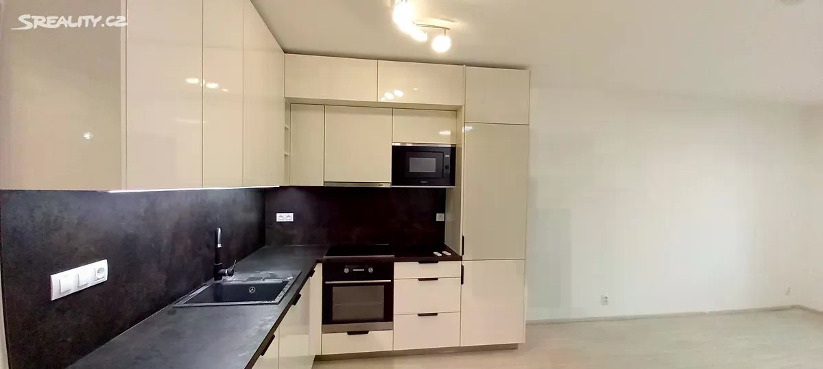 Pronájem luxusního bytu 1+kk v novostavbě, o velikosti 35 m2, v žádané lokalitě Brně - Královo pole. Byt se nachází v prvním podlaží šestipatrového cihlového domu s výtahem. Byt se nabízí částečně zařízený: rohová kuchyňská linka je vybavena sklokeramickou elektrickou deskou, elektrickou troubou, mikrovlnnou troubou, digestoří, myčkou a lednicí. Koupelna bude vybavená pračkou se sušičkou 2 v 1, předsíň je vybavena vestavenou skříni. V koupelně je sprchový kout, umyvadlo a toaleta. Na podlaze v byte je plovoucí podlaha a dlažba. Vchodové dveře do bytu jsou bezpečnostní. V bytě je zavedený internet (není v ceně). Nájem činí 15.500 Kč + 3.500 Kč zálohy na služby. Tento pěkný byt je pro Vás volný od 1. 11. 2025.