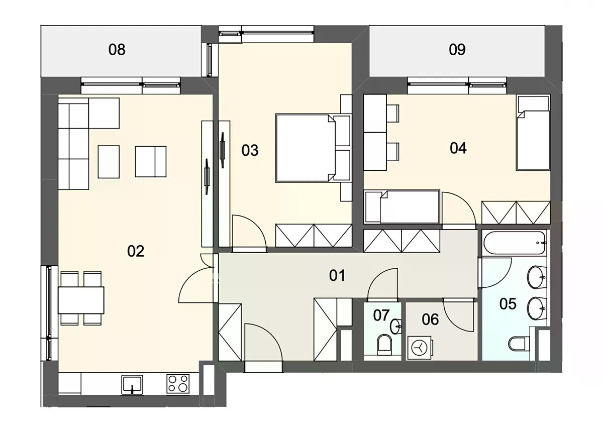 Nabízíme k prodeji prostorný byt 3+kk v ulici Antonína Petrofa v Hradci Králové. Nachází se ve 3. nadzemním podlaží novostavby s výtahem, která byla zkolaudována v roce 2022. Bytová jednotka je součástí žádané lokality v ulici Antonína Petrofa v městské části Nový Hradec Králové. Byt o celkové podlahové ploše 97,60 m² nabízí nadstandardně prostornou a promyšlenou dispozici. Tvoří jej vstupní chodba, obývací pokoj s kuchyňským koutem, dva samostatné pokoje, koupelna s vanou, samostatné WC a komora. K bytu náleží dva balkony o velikosti 6,21 m² a 5,67 m² - jeden přístupný z obývacího pokoje, druhý z ložnice. Součástí prodeje je také sklepní kóje s výměrou 2,67 m², venkovní parkovací stání a garážové parkovací stání. Díky své dispozici a modernímu provedení je byt ideální jak pro rodinné bydlení, tak pro ty, kteří hledají komfortní a klidné zázemí v dosahu centra města. V bezprostředním okolí je kompletní občanská vybavenost - mateřská i základní škola, obchodní centrum Futurum, supermarkety, restaurace, zdravotní středisko a zastávky MHD. Klidná lokalita zároveň nabízí možnost relaxace a volnočasového vyžití v blízkých městských lesích. Doporučujeme osobní prohlídku.
