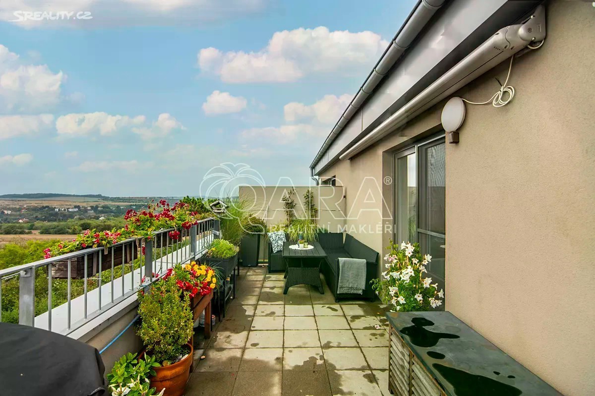 Nabízím ke koupi moderní byt o dispozici 3+kk a výměře užitné plochy 83,2 m², který se nachází v oblíbené lokalitě Horoměřice, v rezidenčním projektu z roku 2018. K bytu náleží prostorná terasa o velikosti 49,8 m², garážové stání a sklep (3,2 m²). Byt je situován v 5. nadzemním podlaží s výtahem a nabízí praktické uspořádání.prostorný obývací pokoj s kuchyňským koutem, ložnici, dětský pokoj, koupelnu s vanou a sprchovou zástěnou, samostatné WC a vstupní chodbu. Byt je ve velmi dobrém stavu, s ideální orientací na jih a západ (většina bytu na jih, obývací pokoj na jih a západ), díky čemuž je dostatečně světlý, vzdušný a energeticky úsporný. Okna směřovaná na jih jsou vybavena vnějšími žaluziemi, část oken také sítěmi proti hmyzu. Energetická náročnost budovy je dle PENB třídy B, vytápění je zajištěno centrálním plynovým kotlem. Highlightem tohoto bytu je terasa, která v rámci Horoměřic těžko bude hledat konkurenci. Má výměru 49,8 m2, dálkově ovládanou výsuvnou markýzu, může se pyšnit naprostým soukromím, klidem či výhledy do okolí. Bonusem navíc je pak přímý výhled na dětské hřiště, kam můžete děti vypustit a přitom je mít pod kontrolou. Lokalita nabízí kompletní občanskou vybavenost a velmi dobrou dopravní dostupnost. V docházkové vzdálenosti se nachází zastávka MHD s přímým spojením na metro A - Bořislavka či Dejvická, základní i mateřská škola, obchod, lékárna i několik restaurací a kaváren. Do Prahy se autem dostanete do 15 minut, na Letiště Václava Havla přibližně za 10 minut. Horoměřice patří mezi vyhledávané rezidenční lokality v zeleni s rychlým dosahem centra města. K bytu jsme připravili webovou stránku, a to jako podstránku mých osobních webových stránek. V případě zájmu Vám zašlu odkaz, stejně jako odkaz na sdílenou složku s dokumentací k bytu a book nemovitosti. Budu se na Vás moc těšit na prohlídce, Realitní srdcař.