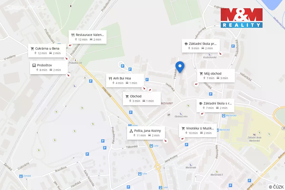Poloha na mapě, užitečná místa a trasy