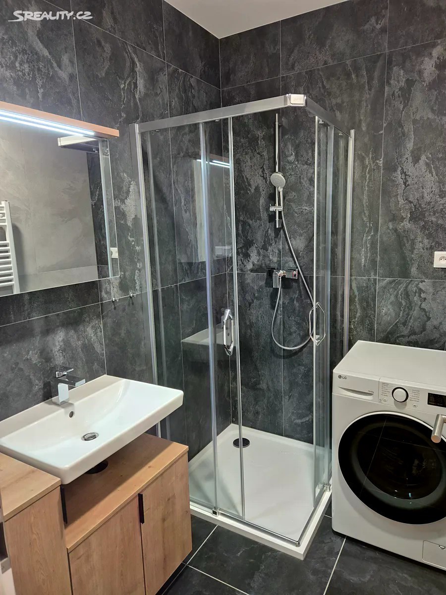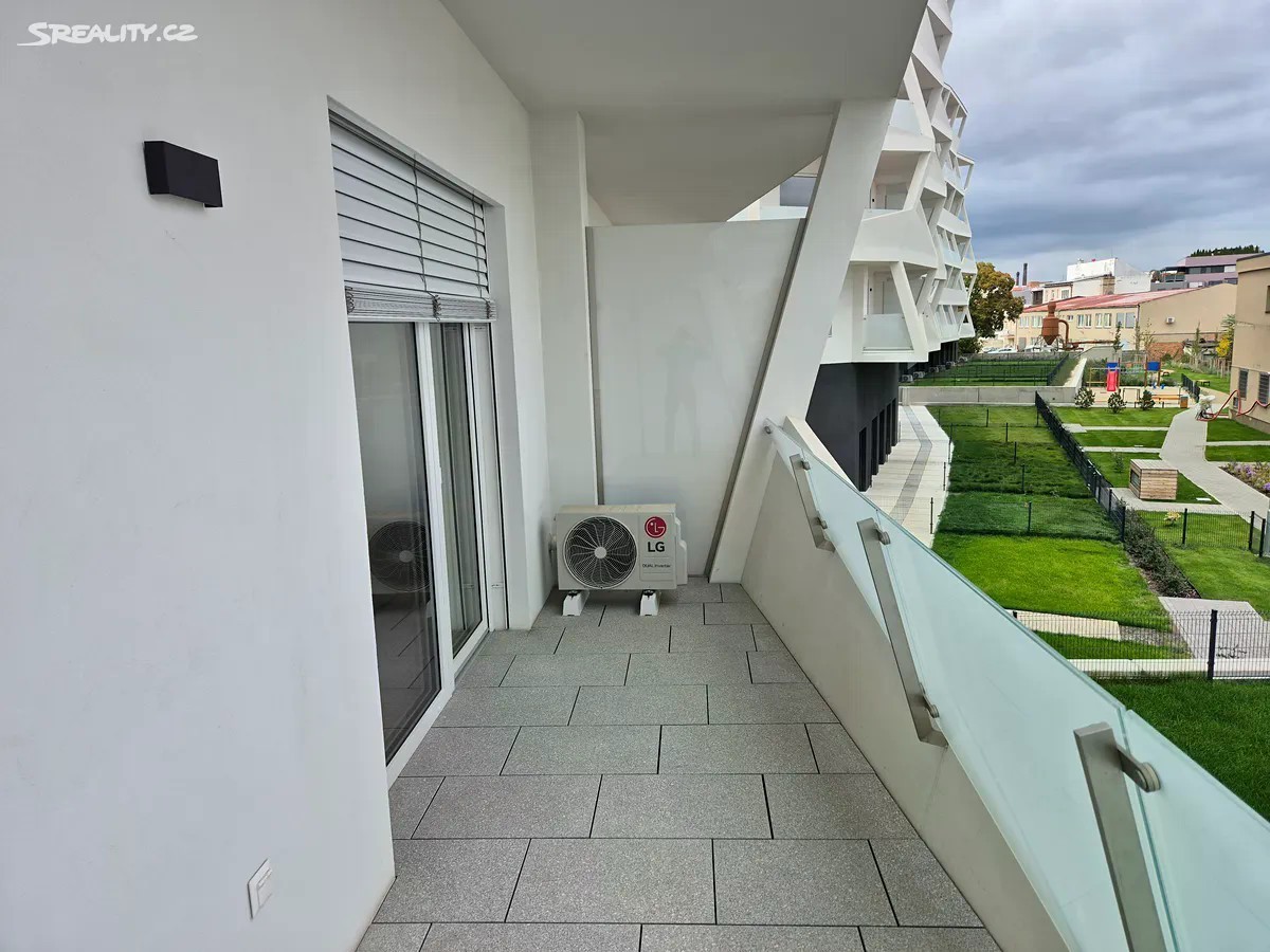 Nabízím k dlouhodobému pronájmu zcela nový moderní byt 1+kk, o velikosti 38 m2 s velkou terasou o velikosti dalších 10 m2, na ulici Komárovská 744/17, Brno-Komárov, v právě dokončeném polyfunkčním projektu Allrisk Meridiem, který již získal řadu architektonických ocenění. Byt se nachází ve 2.NP sedmipodlažního bytového domu s výtahem a je orientován na východ s výhledem do vnitrobloku zahrádek. Byt je částečně zařízený a všechny stavební prvky a příslušenství jsou ve vysokém standardu od renomovaných firem. Inteligentní klimatizace LG, venkovní elektricky ovládané hliníkové žaluzie, velkoformátové obklady stěn, sanitární technika Villeroy Boch, vodovodní baterie Hansgrohe, kuchyň Oresi se spotřebiči včetně myčky a volně stojící ledničkou s mrazákem, v koupelně je pračka se sušičkou LG, dveře Sapeli, minerální podlaha KPP v dřevěném dekoru, elektroinstalace Legrand, inteligentní domácí telefon. Vytápění vertikálními radiátory a ohřev teplé vody je zajištěn teplovodní výměníkovou bytovou stanicí s individuální regulací a měřením. Byt je v energetické třídě B. V prostorném zádveří je vestavěná šatní skříň až do stropu vysokého 3m, zaručující dostatek úložného prostoru, stejně tak jako kuchyňská linka. Parkování v okolních ulicích bez modré zóny. V blízkosti domu je veškerá občanská vybavenost, Albert 200m, zastávka MHD 200m s dojezdem do centra 7 minut, cyklostezka okolo Svratky 5 minut, sportoviště Vodařská a Komec 10 minit, dálnice D1 5 minut. Jedná se o komfortní bydlení v novém prostředí v rychle a moderně se rozvíjející části Brno - jih, kde vzniká moderní bulvár, který propojí tuto novou zástavbu, nový vlakový a autobusový terminál, volnočasovou zónu okolo řeky Svratky až do historického centra města. Byt je volný k okamžitému nastěhování a lze ho nákladově pronajmout i jako kancelář. Cena za pronájem činí 18 900 Kč + zálohové inkaso s ročním vyúčtováním.