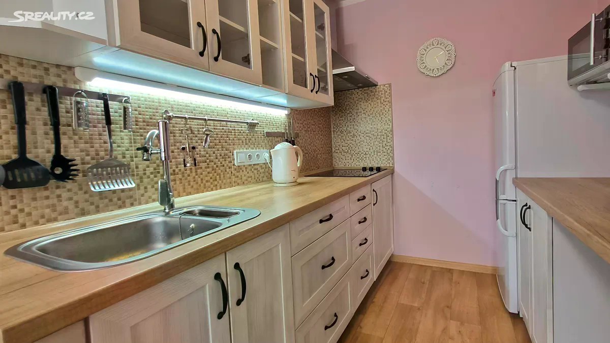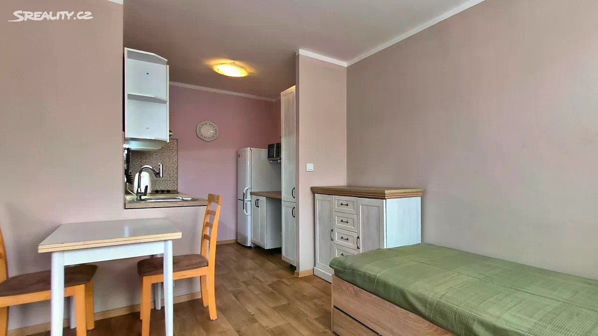 Pronájem útulného, zařízeného bytu 1+KK, Praha 8 - Bohnice, ul. Kostřínská. Okamžitě k dispozici. Byt je situovaný v 2.NP (1. patro) panelového, zatepleného bytového domu s výtahem. Užitná plocha bytu včetně příslušenství 34 m2, k bytu náleží sklepní kóje. Okna situována na jih, velice slunný byt. Bytový dům je po celkové revitalizaci (zateplení, plastová okna). Bytová jednotka pak po celkové rekonstrukci, vyzděné jádro, koupelna s WC a sprchovým koutem. Byt je celkově zařízený, jak je znázorněno na přiložených fotografiích, a to včetně spotřebičů v kuchyni a pračky. V okolí domu nejsou placené parkovací zóny - bezproblémové parkování vozidla. V okolí se nachází veškerá občanská vybavenost, zastávka BUS cca 50 m, škola + gymnázium cca 100 m, supermarket Lidl cca 100 m. Panelový dům situovaný na okraji sídliště, na hranici staré zástavby. V blízkosti je dostatek zeleně - Drahanské údolí, Čimický háj či Zámecká rokle. Nízké náklady na bydlení - měsíční záloha na služby 2.230,- Kč, včetně internetu + vlastní spotřeba elektřiny (převod měřidla) - výpočet je proveden na jednu osobu. Nájemce skládá vratnou kauci ve výši jednoho měsíčního nájmu se službami a dále provizi RK ve výši jednoho měsíčního nájmu. Pronájem možný pouze pro nekuřáky a bez domácích zvířat. Energetická třída D.