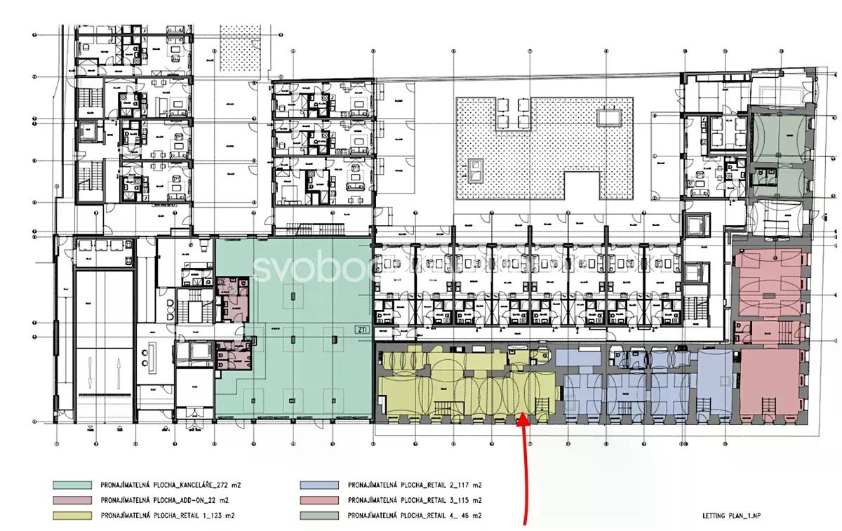 Obchodní prostory k podnájmu v přízemí polyfunkčního komplexu v centru Karlína, z dílny architektonického studia Bevk Perović arhitekti. Objekt vznikl spojením dvou budov - původní z počátku 20. století, která prochází rekonstrukcí a novostavbou ve tvaru L. Budova nabídne dostatek zeleně včetně vnitrobloku s nádvořím a parkem. Podnájem na 1 rok s následnou možností uzavření nové nájemní smlouvy s pronajímatelem. Nájemce požaduje odstupné. Lokalita: Výborná dostupnost - centrum Prahy je městskou hromadnou dopravou 3 minuty (stanice metra Křižíkova - trasa B - a tramvajové zastávky jsou vzdálené 200 m od budovy), 20 minut pěší chůzí a 5 minut automobilem. V okolí se nachází veškerá občanská vybavenost včetně rekreačních a sportovních lokalit. Vybavení a služby: Zdvojená podlaha Osvětlení Vypínače, zásuvky Sprinklery Chlazení - VRV systém Toalety Parkování Nájemné a poplatky jsou uvedeny bez DPH. Nájemce neplatí provizi.