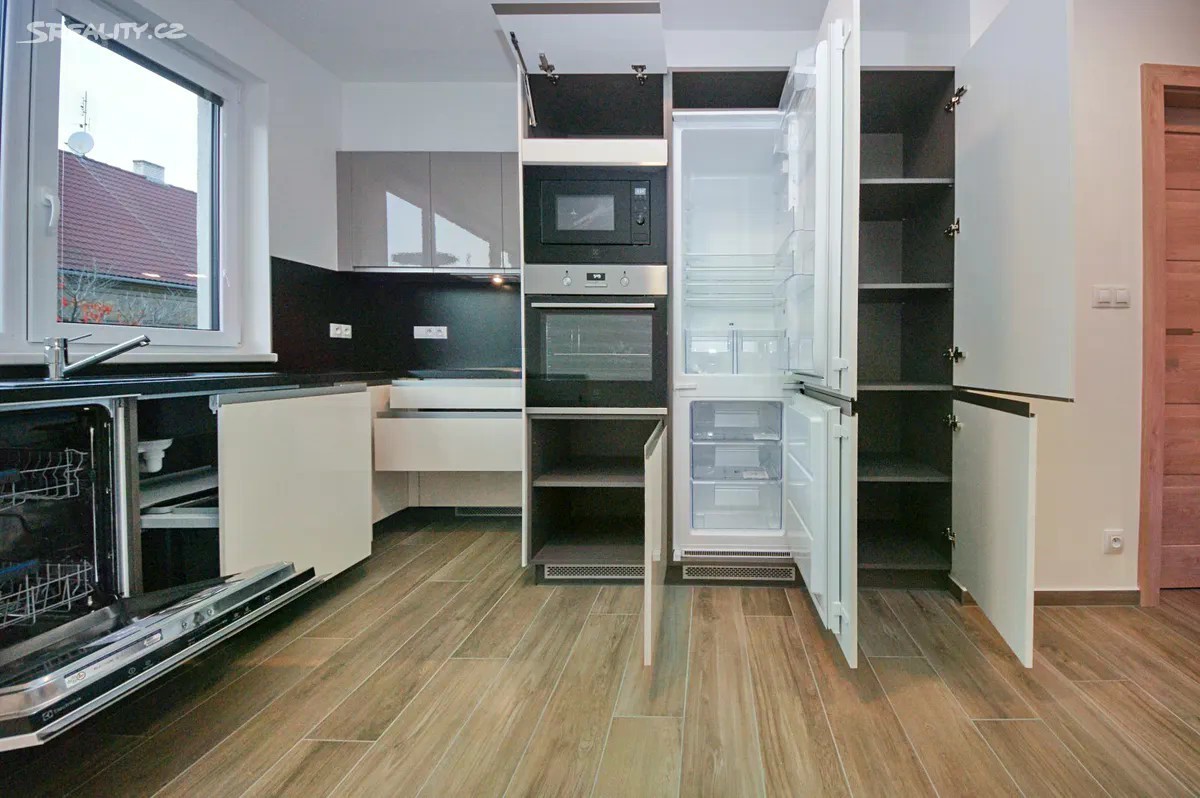 Nově uvolněno od 01.12.2025. Neplatíte provizi! Nabízíme k pronájmu krásný a velmi světlý mezonetový byt se zahrádkou v novostavbě (kolaudace 08´/2021) v ulici Železničářská v Plzni na Doubravce. Absolutní klid a výborná dostupnost MHD (7 min. trolejbusem 16 a 17 na |M| Hlavní nádraží a 14 min. busem 28 a 30 na CAN). Množství zeleně, 200 m park V Homolkách, 400 m sportovní areál Lopatárna a řeka Úslava. Dvoupodlažní byt 3+kk, 78,1 m2, zahrádka 61 m2, ve zvýšeném přízemí (parapet 2,9m vysoko) a v prvním patře. Budova pouze se dvěma bytovými jednotkami. 2x WC! Kuchyňská linka s lednicí, mrazákem, indukční varnou deskou, myčkou, digestoří s odtahem mimo byt, pračkou, horkovzdušnou troubou a mikrovlnnou troubou. Klimatizace v ložnici. Tři velké vestavěné skříně, psací stůl se židlí, manželská postel a palanda z masivu, designová rozkládací pohovka a krbová kamna. Televize (140 cm) zavěšená na zdi s libovolně nastavitelným ramenem. Koupelna se sprchovým koutem a závěsným WC ve 2. NP. Ve spodním podlaží druhé WC s umyvadlem. Na podlahách dlažba a vinyl. Vytápění podlahové (plyn. kotel), regulace tepla digitálními termostaty v každé místnosti. Velké posuvné plastové (portálové) okno se vstupem na zahradu. Všechna oka se žaluziemi, v dětském pokoji navíc předokenní roleta na dálkové ovládání. Orientace oken na jihovýchod a severozápad. Stropy vysoké 261 a 256 cm. K dispozici zahradní bouda 1,1 m2. Internet kabel CETIN 100Mb/s, WIFI Access Point (talíř) v obou podlažích + datová zásuvka pro TV (i v ložnici). Bezpečnostní dveře. Krásné okolí, kompletní občanská vybavenost - v místě škola, školka, poliklinika, pošta, restaurace, Tesco, Lidl a Centrum Doubravka. Výborné spojení autem na D5. K dispozici od 01.12.2025. Více fotografií (46) na stránkách blanikreality pod ID: 25285. Nájem 26.900,-Kč/měs. + služby 5.060,-Kč/měs./2 os., včetně internetu + elektřina cca 1.000,-Kč/měs., kauce 50.000,-Kč, provize pro RK 0,-Kč. Energetická náročnost budovy PENB = "B", velmi úsporná.
