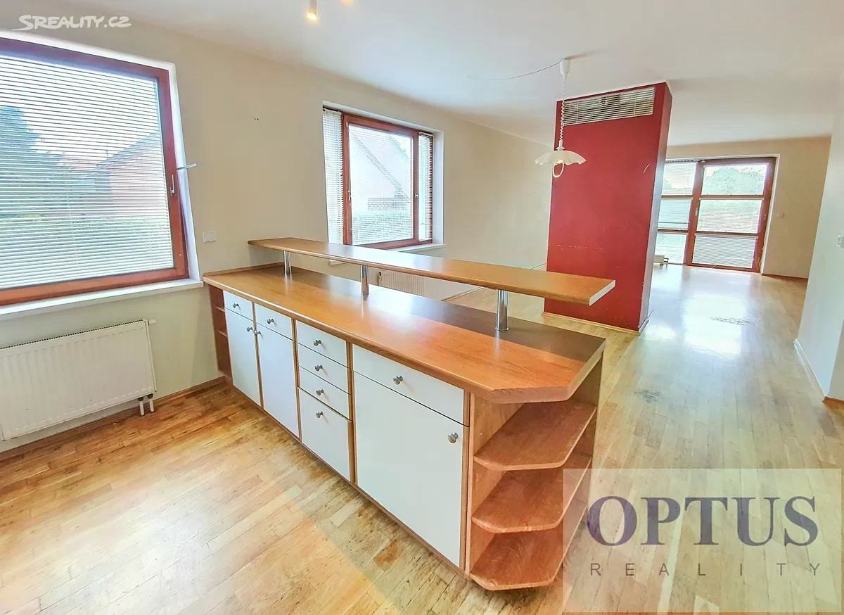 Nabízíme prostorný rodinný dům o velikosti 6 + kuchyňský kout (celková plocha cca 250 m2) s terasou v lokalitě Praha (4) - Újezd u Průhonic, v klidné rezidenční zástavbě v sousedství Milíčovského lesa, cca 10 minut autobusem na metro Opatov. Jedná se o rohový řadový dům se 2 nadzemními a 1 podzemním podlažím, který zahrnuje: - suterén se 2 ložnicemi, dále je zde třetí koupelna (se sprchou a WC), prádelna s technickým zázemím a garáž; - přízemí se vstupní halou s vestavěnými skříněmi, 1 koupelnou (se sprchou a WC), prostorným obývacím pokojem o velikosti 53 m2 s krbem, s plně vybavenou kuchyní a jídelní částí a se vstupem na terasu; - v 1. patře se nachází 3 ložnice, druhá koupelna s vanou a sprchou a samostatné WC. Další vybavení: kuchyňské spotřebiče (el. varná deska, el. trouba, myčka, lednice s mrazákem, mikrovlnka), pračka, sušička, vnitřní horizontální žaluzie, alarm, příprava pro internet / satelit, zrenovované dřevěné podlahy (na fotografiích je stav před renovací) a dlažba, dům je vytápěn plynovým kotlem. K domu náleží zahrada o velikosti 430 m2, k dispozici je garáž pro 1 auto + 2 stání na pozemku. K nastěhování od 20.11.2025. Cena 44.000 Kč/měsíc + poplatky (energie budou převedeny na nájemce) + internet + provize RK 1 měsíční nájem. Peněžní jistota (kauce) činí 2 měsíční nájmy. Realitní kancelář nemá k dispozici energetický štítek, a proto uvádíme třídu energetické náročnosti budovy G.