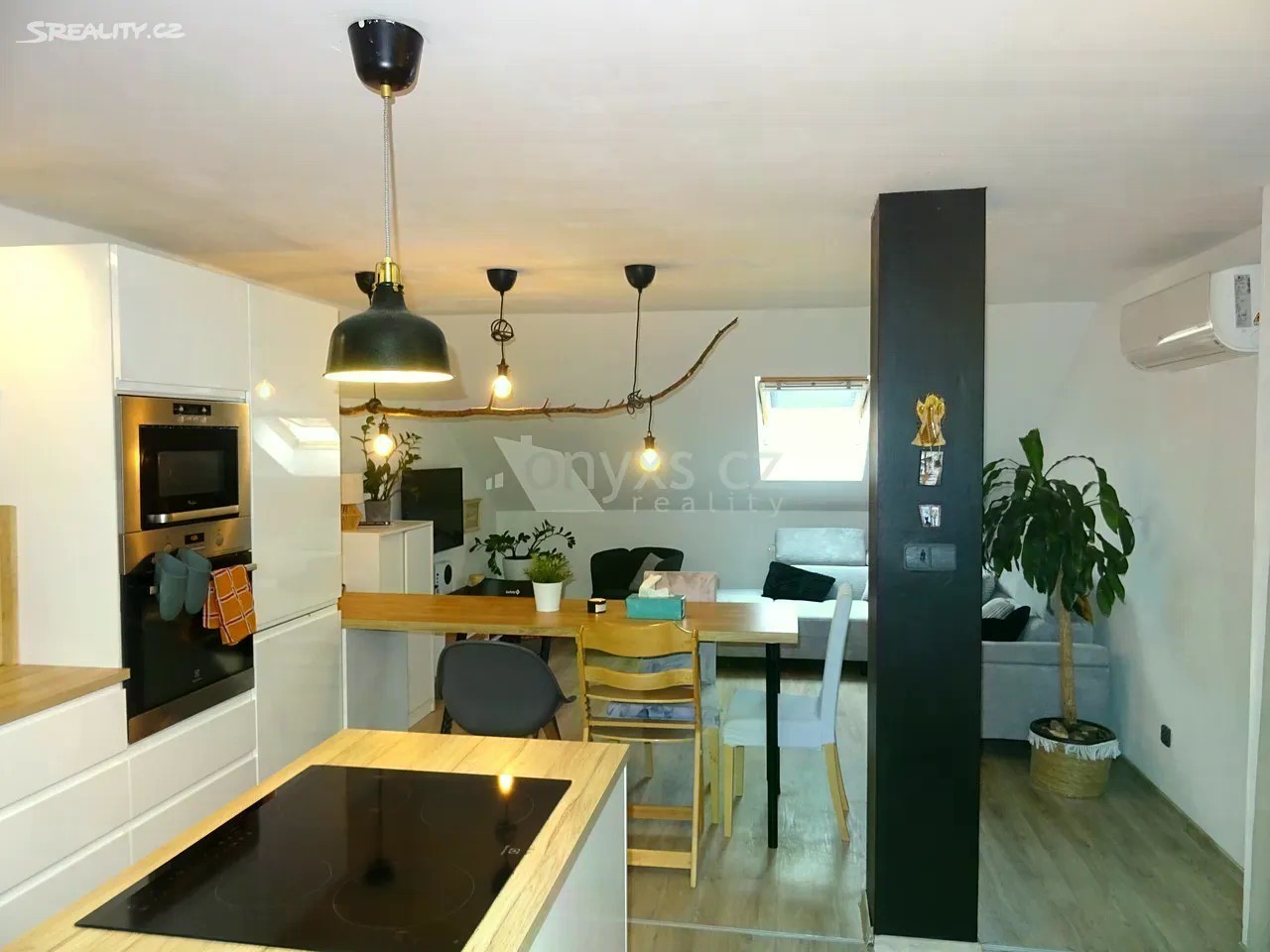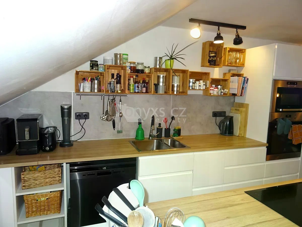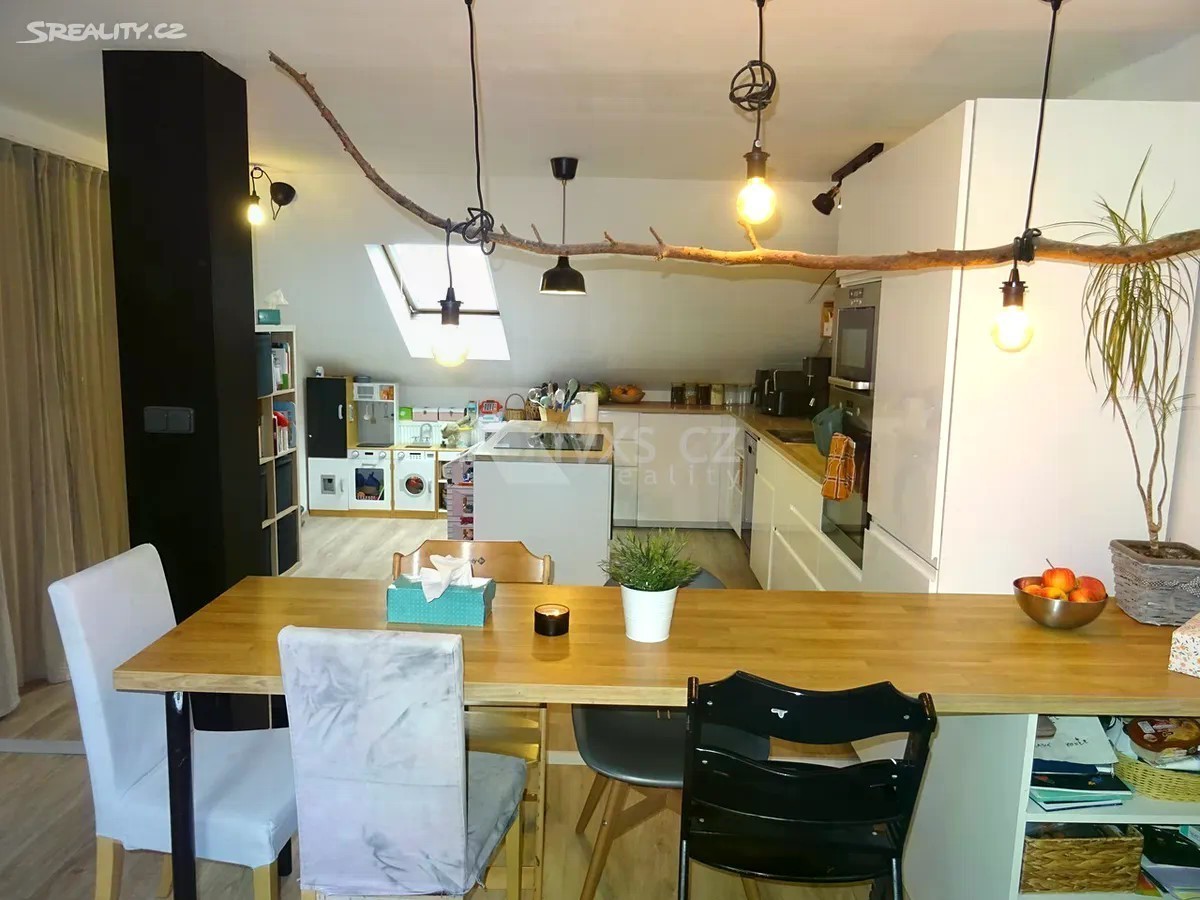 Nabízíme Vám podkrovní, atraktivní a rozlehlý byt 3+1 o celkové rozloze 87,45 m2, se sklepem 13 m2, situovaného do klidné oblasti města Slaný Tento byt se nachází ve třetím nadzemním podlaží cihlového bytového domu. V bytě je velký obývací pokoj, který je spojený s jídelnou a kuchyní. V ložnici je šatní kout, v dětském pokoji je stěna s úchyty pro lezení a žebřiny. Ze vstupní předsíně se vchází do komory, WC a velké koupelny s vanou a sprchou. V bytě proběhla rekonstrukce 2019, vylité podlahy betonem a na nich je vinyl a dlažba, nová eurookna, topení je zajištěno plynovým kotlem (2 roky), klimatizací (2 roky), nová elektřina. K bytu náleží prostorný sklep, ve kterém je umístěna čistička a změkčovač vody pro dům, nová kanalizace. Střecha je z roku 2002, krytina - kanadský šindel, ročně probíhá čištění střechy a oken. K bytu náleží ještě 1/3 půdy. Ve Slaném je plná občanská vybavenost (školky, školy, poliklinika, úřady, obchody). Díky vynikající poloze jste za tři minuty v centru Slaného. Byt je určen pro dlouhodobé bydlení rodiny s dětmi, je na klidném a bezpečném místě. V okolí jsou hezké procházky. Vynikající dopravní spojení do Prahy. Byt je volný ihned. PENB bude dodán.