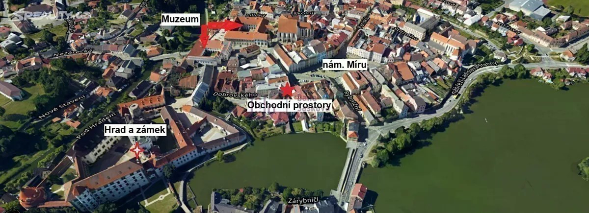 Pronájem obchodních prostor na nám. Míru v Jindřichově Hradci. Prostory se nachází v přízemí historického domu, který stojí na frekventované spojnici mezi náměstím Míru a Státním hradem a zámkem Jindřichův Hradec. Celková plocha 50 m2 nabízí prodejní prostor s bezbariérovým vstupem a výlohou, dále zázemí s toaletou a umyvadlem. Přívod elektřiny, vody a odpadní svod jsou mimo jiné vyvedené v podlaze pro možné vybudování barového či obslužného pultu. Vytápění elektrickými akumulačními kamny. Vhodné využití jako prodejna, kavárna nebo bar. Cena je uvedená bez záloh na dodávku energií a služeb. Vratná kauce 20.000,- Kč. Provize pro RK 10.000,- Kč. Pronajímatel si vyhrazuje výběr nájemce dle svých vlastních kritérií. Volné od 1. září 2024.