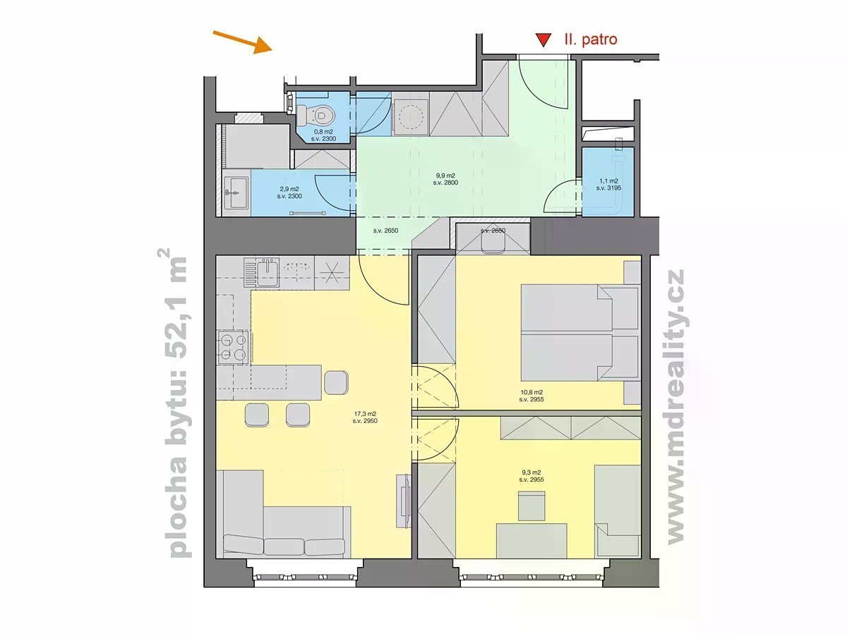 Ve výhradním zastoupení nabízíme k prodeji kompletně zrekonstruovaný byt 3+kk (52 m2) ve starším cihlovém bytovém domě. Nová dispozice vznikla za účasti architekta na původním půdorysu bytu 1+1. V bytové jednotce byly nově zhotoveny veškeré rozvody, vystavěny nové (odhlučněné) sádrokartonové příčky a podhledy, zrekonstruovány podlahy a následně byl byt vybaven na míru zhotoveným nábytkem. Zcela nová je i kuchyně (indukční varná deska, elektrická pečící trouba, recyklační odsavač, vestavěná lednice) a koupelna (sprchový kout, umývadlo) a WC (odvětráno do světlíku). Pračka je součástí vestavěné skříně v chodbě. Nová dispozice je patrná z připojeného půdorysu, ložnice je bez okna, větrání řešeno vzduchotechnikou. Příslušenství bytu tvoří sklepní kóje aktuálně ve výstavbě. Za domem (ve "vnitrobloku") najdete zatravněné atrium. Stanice metra Pankrác na trase C je vzdálena pouhých 5 minut pěšky.