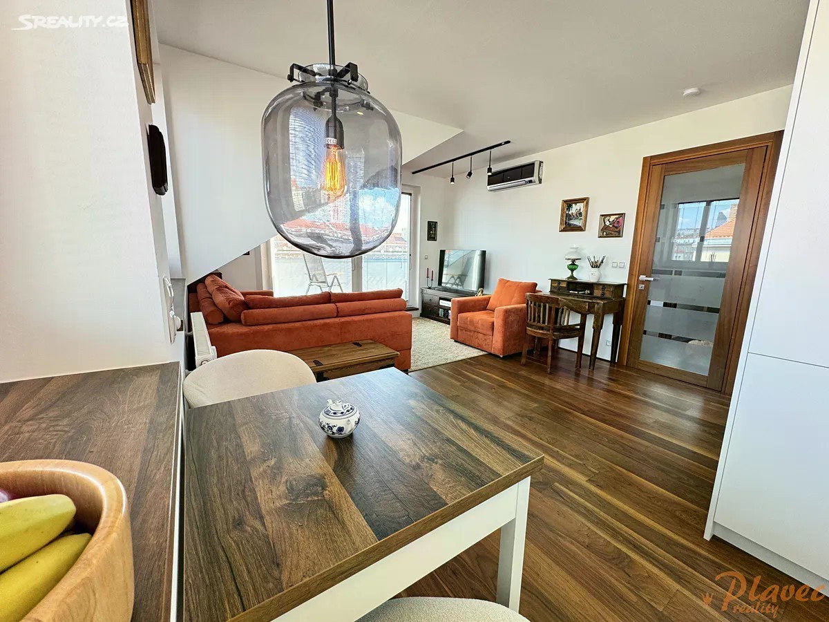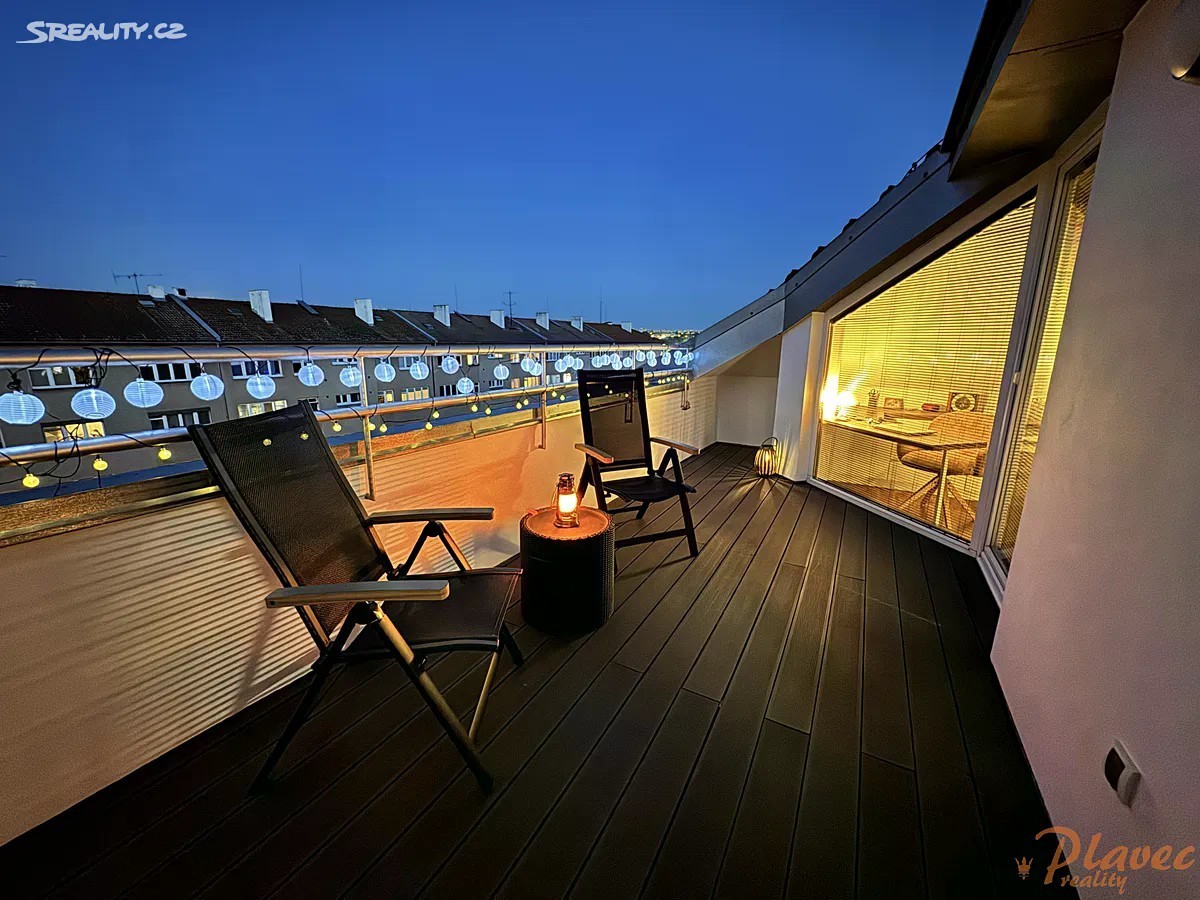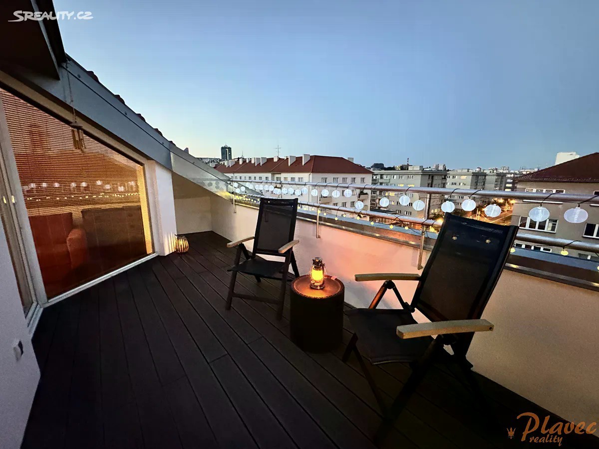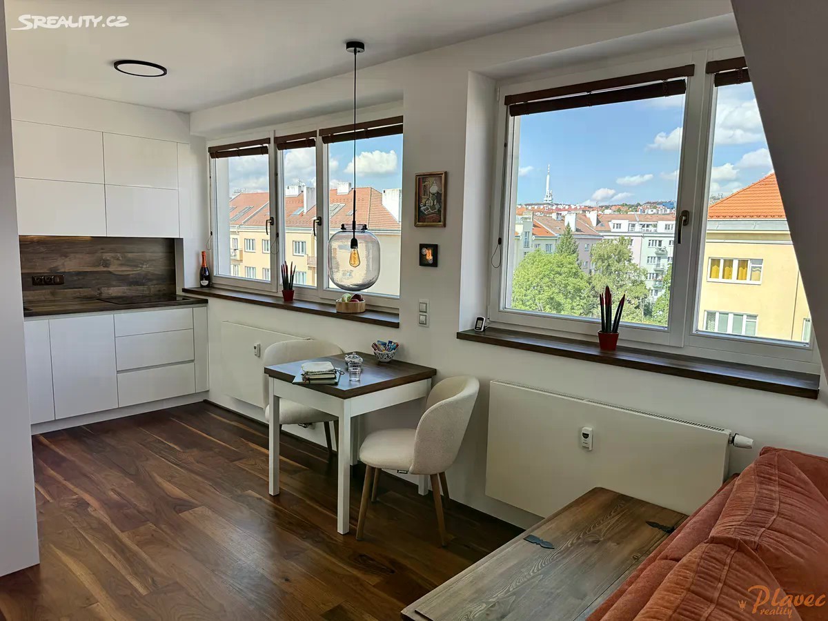 Nabízíme prodej hezké, vkusné půdní vestavby bytu o velikosti 2+kk s terasou v ulici Jerevanská, Praha - Vršovice. Byt se nachází v udržovaném, cihlovém domě, který prošel v roce 2010 rekonstrukcí, přičemž horní část, kde se byt nachází, byla vybudována jako novostavba. Jedná se o rohový byt o podlahové ploše 62,727 m2 (a užitné ploše 59,59 m2), kde dominantou je terasa + 14,24 m2 s krásným výhledem na Prahu. Byt je laděn v moderním stylu. Je ideální pro ty, kteří hledají pohodlné, komfortní bydlení s výhodami městského života a zároveň ocení jedinečný charakter podkrovních prostor nebo jako investiční byt. Veškerá občanská vybavenost v pěší dostupnosti je velmi silným benefitem bydlení ve Vršovicích: Obchodní centrum Eden, kavárny, cukrárny, restaurace, obchůdky, pivnice, služby, farmářské trhy na Kubánském náměstí, Vinohradská nemocnice, hypermarket Tesco 6-24h. Zastávky tramvaje přímo u domu, autobusové zastávky, vlaková stanice Eden - dostupnost všemi směry po Praze i mimo ni. Milovníci sportu ocení, že byt se nachází poblíž Fortuna Areny a dalších sportovišť jako např, plavecký a zimní stadion. Byt se nachází v 6. patře ze 6, cihlového domu s výtahem přímo až do patra. V domě jsou nové stoupačky, rozvody elektřiny, nová střecha, výtah, nová okna i balkony a kamerový systém. Dům má i atomový kryt. Vytápění bytu je centrální s podlahovým vytápěním v koupelně. V bytě je v obou pokojích klimatizace (v létě ochlazuje, v zimě ohřívá vzduch). Pro vstup do domu je videotelefon. Byt disponuje vkusným, moderním vybavením. Jsou zde dřevěné podlahy, dřevěná okna s novými žaluziemi s texturou přírodního dřeva, dřevěné dveře italské značky Pivato, v koupelně moderní kombinace vany a sprchového koutu. V bytě je nový nábytek na míru v bílém sametovém matu: kuchyňská linka, komora, ložnice včetně pracovního a úložného prostoru v kombinaci masiv dub, vestavěná skříň, botník. Vše nové a v záruce včetně spotřebičů. V kuchyni je extra velká vestavná lednice s mrazákem Whirlpool - systém otevírání pouhým dotykem, dále dřez a baterie Blanco, vestavné spotřebiče AEG, včetně indukční desky. Bezpečnostní vstupní dveře. Po dohodě může zůstat i veškeré další vybavení bytu, které je vkusně sladěno. Dispozice: vstupní chodba, obývací pokoj s kuchyňským koutem a komorou, ložnice, terasa se vstupem z obou pokojů, koupelna s vanou v kombinaci se sprchovým koutem, toaleta. Sklep v suterénu domu. Byt je možné financovat hypotečním úvěrem. V případě zájmu Vám rádi pomůžeme vyřídit hypotéku na míru.