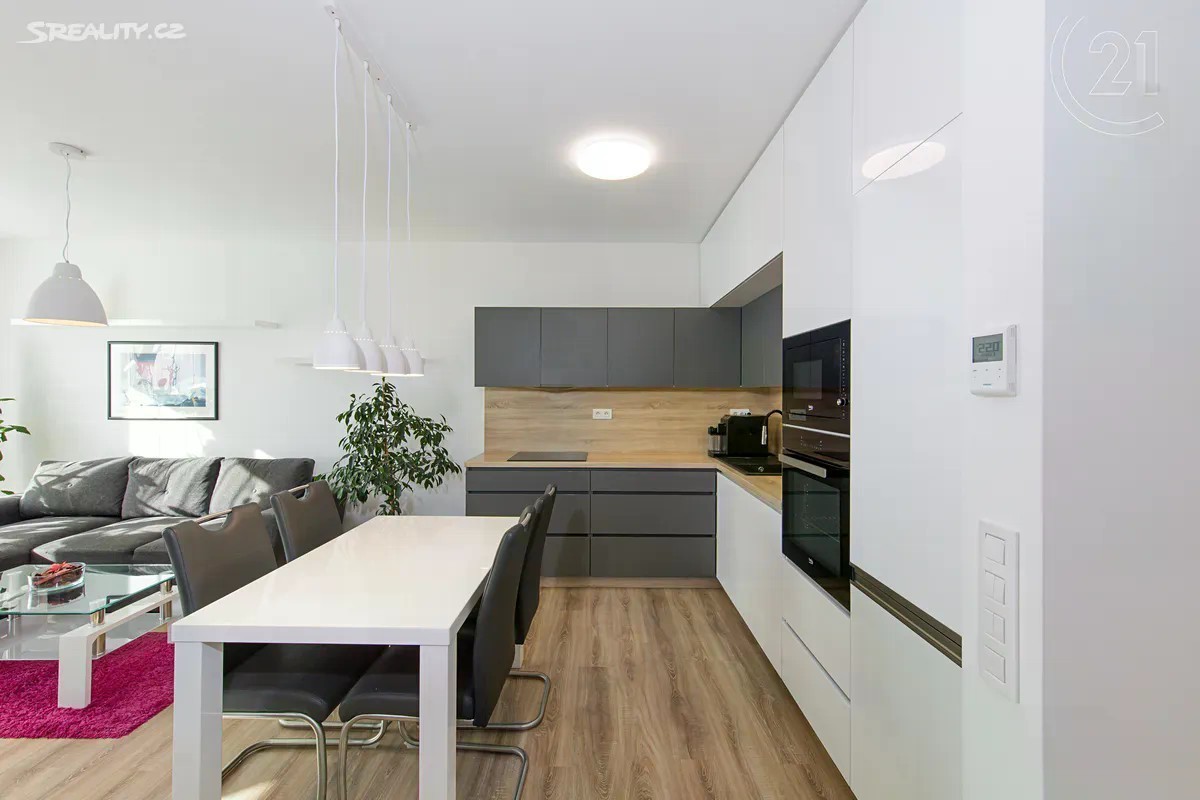 Představujeme Vám exkluzivní byt 2+kk s terasou orientovanou na jižní stranu a zděnou sklepní kójí, nacházející se v moderní novostavbě z roku 2021 v oblíbené lokalitě na ulici Hněvotínská v Olomouci. Rezidence s výtahem nabízí vysoký standard provedení a klidné bydlení s dostatkem soukromí. Užitná plocha bytu činí 83 m², k němuž náleží terasa o velikosti 6 m² a sklepní prostor o výměře 8 m². Dispozice zahrnuje vstupní zádveří s vestavěnými skříněmi, plně vybavenou kuchyň se spotřebiči značky Beko a jídelní kout propojený s obývací částí, která vytváří světlý, otevřený prostor s přímým vstupem na terasu. Dále ložnice, moderní koupelna se sprchovým koutem a komora s přípojkou na pračku a sušičku. Velkou výhodou je možnost úpravy dispozice na 3+kk, čímž lze získat další samostatný pokoj. O maximální komfort se starají elektrické venkovní žaluzie a klimatizační jednotky v obývacím pokoji i ložnici. Vytápění je dálkové, což zaručuje pohodlný a úsporný provoz. Vybavení lze ponechat kompletní, včetně veškerého nábytku - byt je tak ihned připraven k nastěhování bez nutnosti dalších investic. Garážové stání je možné v případě zájmu dokoupit. Tato nemovitost představuje moderní, slunné a útulné bydlení v jedné z nejžádanějších částí Olomouce a zároveň bezpečnou investici do budoucna. K bytu nabízíme také výhodné financování s postupným snižováním úrokové sazby. Pokud hledáte stylový a prakticky řešený domov s možností individuálních úprav, tato nabídka je přesně pro Vás!