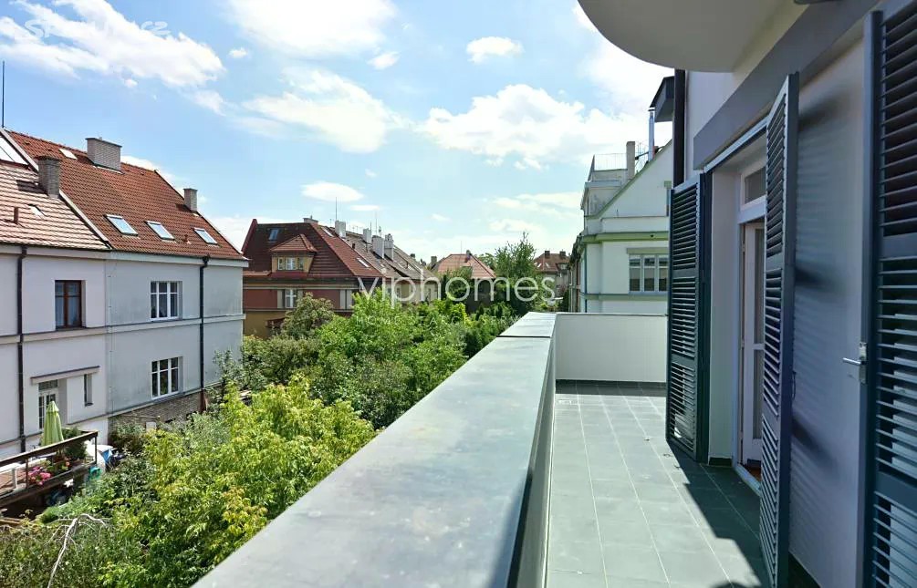 Prvorepubliková vila 5+1 z roku 1930, pečlivě zrekonstruovaná tak, aby vyhovovala potřebám moderní rodiny. Prostorná vila s udržovanou zahradou se nachází v prestižní vilové čtvrti Prahy 6 - Hanspaulka s veškerou, až nadstandardní vybaveností v nejbližším okolí v Dejvicích, s dostupností do centra metrem za 10 minut. Jsou zde parky, zeleň, obchody, restaurace, BUS navazující i směrem na letiště, metro Dejvická i Hradčanská, vše do 5ti minut autem. Přírodní chráněná památka - Šárecké údolí, cyklotrasy vedoucí přímo do přírody za Prahou. Výhodu je perfektní dostupnost do akreditované mezinárodní školy v Nebušicích. Dům nabízí k užívání 4 ložnice, 3 koupelny, velký obývací pokoj s krbem a jídelnou, kuchyňský kout/plynová varná deska, trouba, lednice, mrazák a myčka nádobí/ a vstup na zahradu, sklad a vstup do garáže, zimní zahradu (80 m2), ateliér a studio. Na každém poschodí domu je balkon či terasa. V suterénu se nachází prádelna, chladící sklad a sauna. K nemovitosti také náleží dvougaráž. První patro:: 1. ložnici s vestavěnou skříní a přímým vstupem na balkón s výhledem do zahrady, 2. ložnice s vlastní šatnou a přímým vstupem na terasu s výhledem do ulice, 2 koupelny (vana, sprchový kout, toaleta a bidet) a oddělená toaleta. Přízemí domu nabízí k užívání vstupní chodbu s vestavěnými skříněmi, velkoryse řešený obývací pokoj s krbem a s jídelní částí, plně vybaveným kuchyňským koutem (plynová varná deska, trouba, lednice, mrazák a myčka nádobí) a přímým vstupem na terasu s výhledem do zahrady, chladící místnost, skladovací místnost a vstup do garáže. Podkroví: je prostor, který lze využít dle potřeby např. dětská herna, posilovna, pracovna). V patře s přímým vstupem do zahrady se nachází ložnice / oddělené studio, koupelna (sprcha, sauna), vinný sklípek, samostatná toaleta, technická místnost s odděleným vstupem do domu (pračka a sušička), chodba a vstup do dvojgaráže. K dispozici ihned