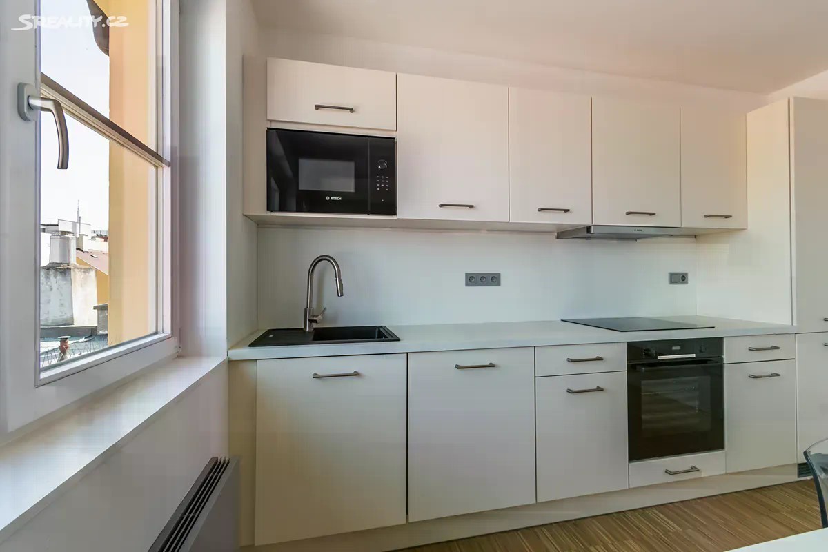 K dlouhodobému podnájmu Vám nabízíme úplně nový byt po kompletní rekonstrukci v historickém centru Prahy. Byt je velice světlý a vzdušný, díky množství oken, zejména těch střešních. Dispozice bytu je 2+kk, výměra 50 m2. Byt se nabízí téměř kompletně zařízený: vestavěný nábytek - šatní skříně, pohovka, postel, jídelní stůl se židlemi. Byt je umístěn ve 4. patře cihlového domu bez výtahu. Byt disponuje také kompletně vybavenou kuchyní na míru, spotřebiči značky BOSCH: včetně lednice s mrazákem, troubou s parní funkcí, mikrovlnkou, myčkou a indukční varnou deskou. V koupelně pak najdete novou pračku. Podlahy jsou dřevěné, dveře bezfalcové a obklady v koupelně velkoformátové. Topení a ohřev vody je řešeno lokálně, plynovým kotlem, tudíž poplatky jsou v rozumné výši. K dispozici ihned. V blízkém okolí domu je veškerá občanská vybavenost, dům se nachází hned vedle obchodního centra Palladium. V okolí neleznete výborné resturace, bary, obchody a služby veškerého druhu. Stanice metra a tramvaje ''Náměstí Republiky'' - B se nachází pouze 3 minuty chůze od domu, stejně tak stanice vlaku ''Masarykovo Nádraží''. Parkovat mohou rezidenti na modré zóně přímo před domem za 1200,- Kč ročně.