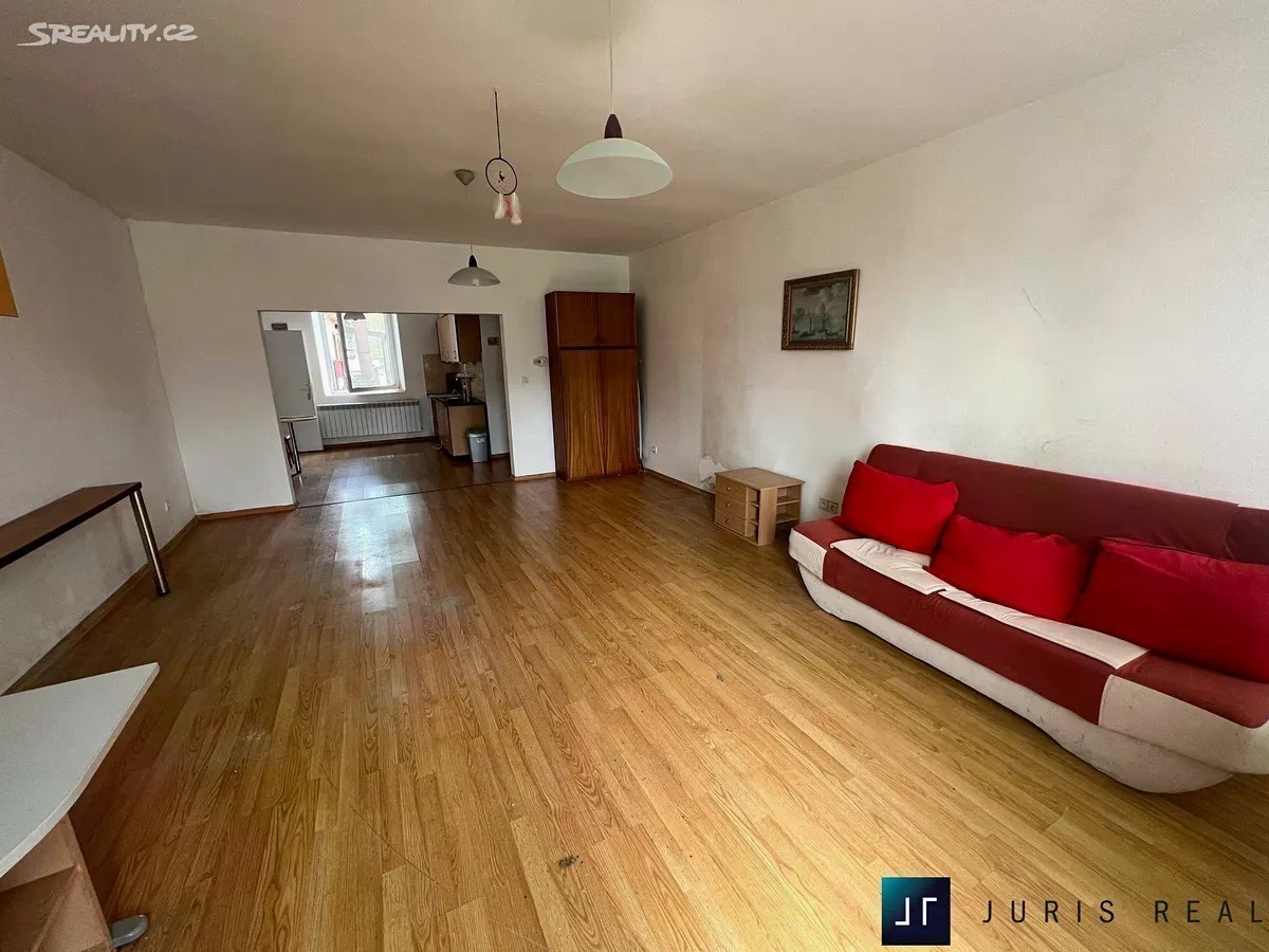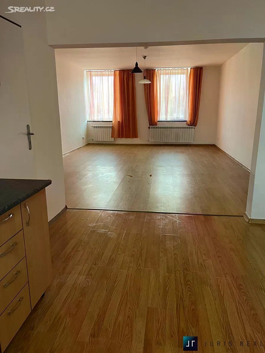 Nabízíme k pronájmu prostorný byt 1+kk (možno přepažit na 2+kk) v přízemí cihlového domu bez výtahu. Kuchyňský kout je situován do dvora, pokoj do zahrady. Byt je nezařízený, je zde pouze kuchyňská linka s elektrickým sporákem. Prostorná předsíň a koupelna s vanou je společná s WC. Vytápění zajištuje elektrokotel. K bytu náleží parkovací stání před budovou. Přímo v areálu jsou i komerční prostory k podnikání (dílny, sklady), lze kombinovat s bytem. K dispozici ihned.