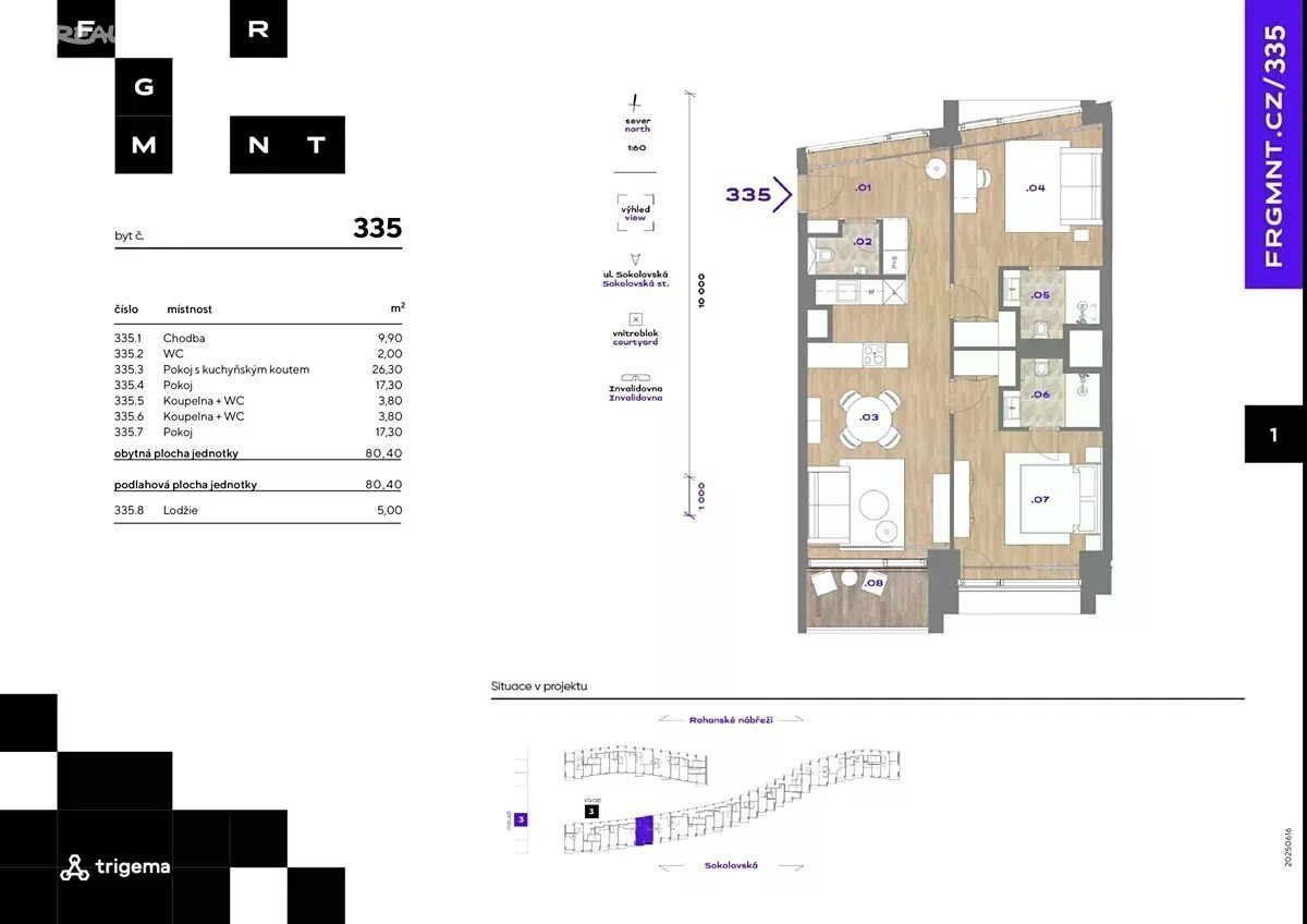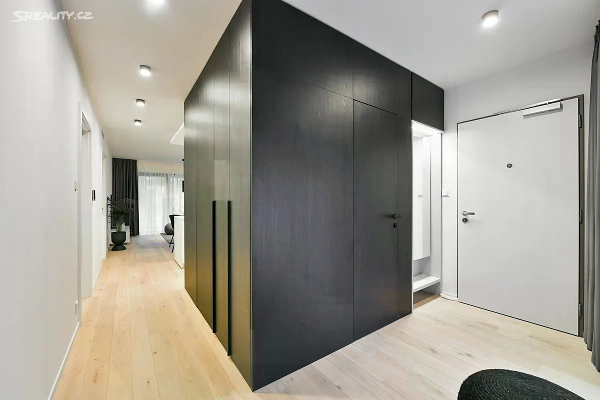 Nabízíme k dlouhodobému pronájmu kompletně zařízený moderní byt 3+kk situovaný ve 3. patře unikátního projektu Fragment v atraktivní lokalitě Praha Karlín. Dispozice bytu: Interiér tvoří vstupní chodba, obývák s jídelní částí a kuchyňskou linkou se spotřebiči, ložnice s postelí, úložnými prostory a en-suite koupelnou s toaletou a sprchovým koutem, pracovna s druhou koupelnou a třetí samostatná toaleta. K bytu náleží také lodiže o velikosti 5 m2. Vybavení a standardy: • Chytrá domácnost LOXONE • Vytápění a chlazení bytu skrze stropní podhledy • Vzduchotechnika s rekuperací • Variabilní osvětlení bytů • Velkoformátová okna • Venkovní rolety • Kvalitní dřevěné podlahy • Vestavěné skříně • Spotřebiče: pračka+sušička, myčka, indukční varná deska, digestoř, pečící trouba, mikrovlnná trouba, lednice + mrazák • Wellness WC s bidetovou sprškou • Internetové připojení Další informace: • Poplatky za služby a zálohy za energie se hradí zvlášť • Garážové stání k dispozici za poplatek 2 700 Kč / měs. + DPH • Sklepní kóje k dispozici za poplatek od 800 Kč / měs. + DPH • V budově je 24/7 recepce / ostraha, kamerový systém • Obchody a služby v budově - fitness centrum, kavárna, restaurace, drogerie, květinářství, kadeřnictví, zubní klinika, galerie Provize se neplatí. Dostupnost: K nastěhování od 3.11.2025.