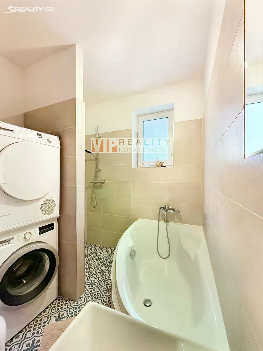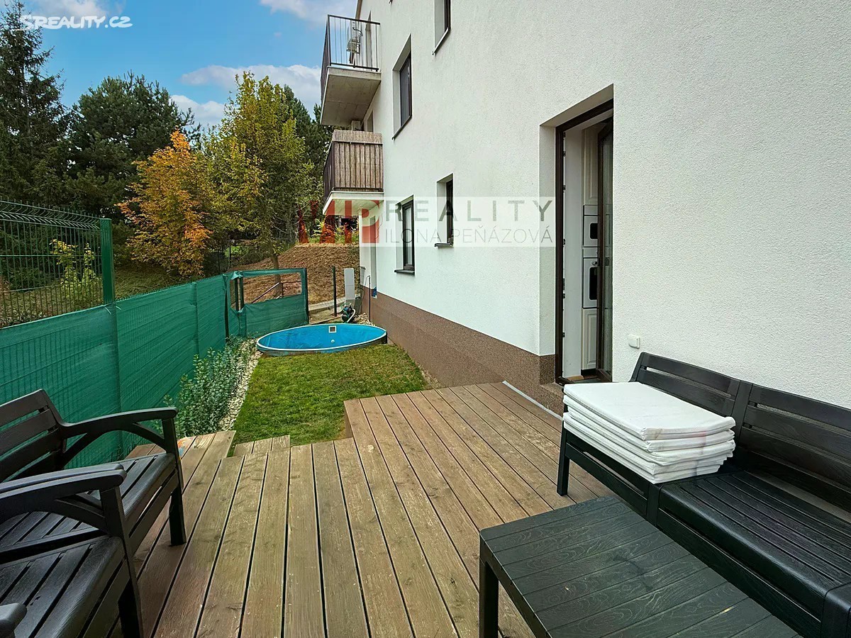 Nabízíme ke koupi krásný, světlý a promyšleně řešený byt o dispozici 3+kk a podlahové ploše 76 m², který se nachází v 1. nadzemním podlaží novostavby bytového domu. Součástí bytu je soukromá zahrádka o velikosti 50 m² s terasou (12 m²) a bazénem (cca 3 m³) - ideální místo pro letní relax, grilování nebo odpočinek s rodinou. K bytu dále náleží vlastní garáž o ploše 19 m² a prostorná sklepní kóje, což zajišťuje dostatek úložného prostoru i pohodlné parkování. Byt je energeticky nezávislý - má vlastní elektrický kotel pro vytápění a elektrický bojler pro ohřev vody. O komfort v letních měsících se stará klimatizace, která zajišťuje příjemné prostředí po celý rok. Dispozice bytu je velmi praktická - pokoje jsou neprůchozí, takže každý má své soukromí. -Obývací pokoj je propojen s moderní kuchyní a má přímý vstup na zahradu i na prostornou lodžii. -Ložnice a dětský pokoj nabízejí dostatek světla i prostoru. -Koupelna je vybavena vanou i sprchovým koutem, WC je samostatné. Byt se prodává částečně vybavený - na míru a kompletně vybavená kuchyňská linka se spotřebiči a další nábytek dle domluvy. Celkově jde o příjemné, moderní a útulné bydlení, které kombinuje komfort novostavby s výhodami rodinného domu - vlastní zahrádka, terasa, bazén, garáž i klimatizace. Perfektní volba pro rodinu s dětmi nebo pár, který ocení pohodlí, soukromí. Pro více informací nebo sjednání prohlídky mě neváhejte kontaktovat. Ráda vám byt osobně představím.