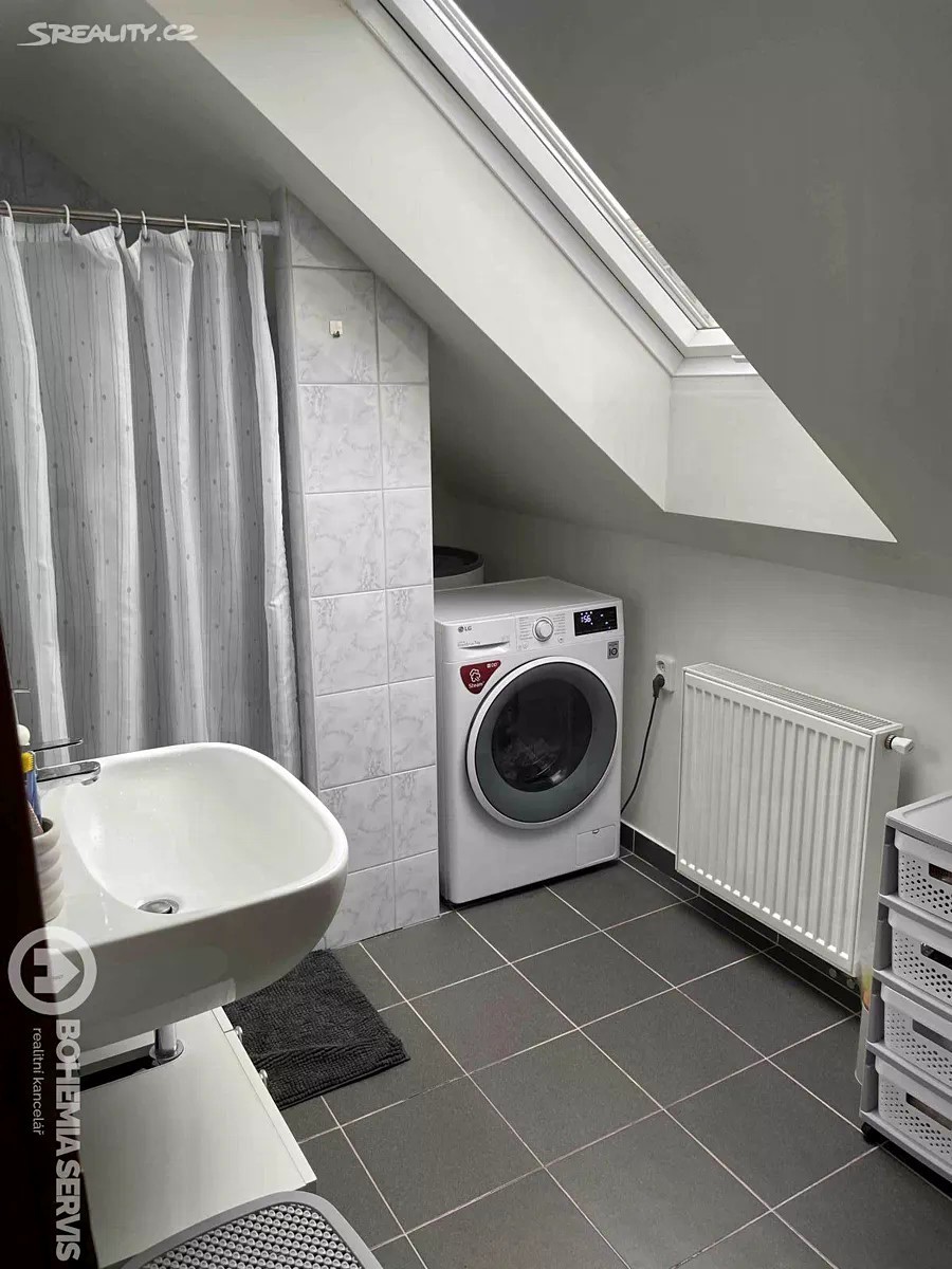Nabízíme k pronájmu podkrovní byt ve druhém nadzemním podlaží domu v obci Lovčice. Dispozice: prostorný obývací pokojem spojený s kuchyňským koutem, ložnice, koupelna, chodba s vestavěnou prostornou skříní, druhá koupelna se sprchovým koutem, umyvadlem a WC a s přípojkou na pračku. Výměra bytu 60 metrů čtverečních. Ideální bydlení pro mladý pár. Vytápění je centrální - kotlem na dřevo (instalován před dvěma lety. V bytě je nový rozvod el. energie se samostatným měřičem spotřeby el. proudu. K dispozici je travnatá plocha dvorku a nová pergola vedle domu. Nájem 9.500 Kč / měsíc. Záloha na energie 2500 Kč / měsíc. Kauce 19.000 Kč. Poplatek realitní kanceláři 10.000 Kč. Volné od 1.11. 2025