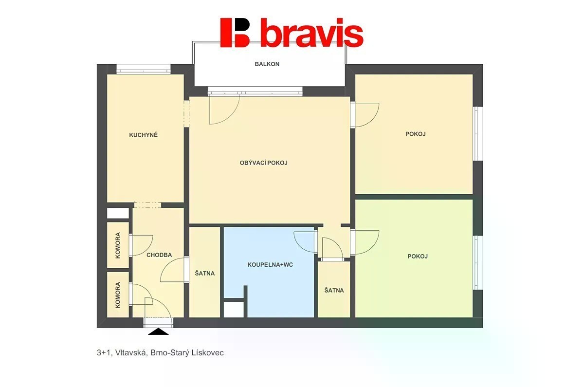 Pronájem bytu 3+1 70 m² Vltavská, Brno - Starý Lískovec