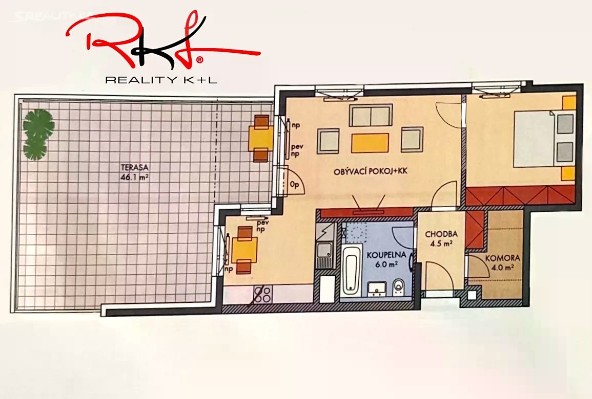 Nabízíme Vám byt o dispozici 2+kk, který se nachází v 1. patře bytového domu, Kryšpínova, Praha 10. Výměra bytu činí 61 m² + terasa 46,1 m². Vnitřní dispozice: Vstupní chodba kde se nachází vstup do obývacího pokoje spojeného s kuchyňským koutem, který nabízí přímý vstup na terasu, kuchyňský kout vybaven vestavnými spotřebiči. Z obývacího pokoje je vstup do ložnice. Dále z chodby je vstup do koupelny s vanovým koutem a toaletou. Komora. Bytový dům se nachází ve velmi příjemné lokalitě, kde najdete kompletní občanskou vybavenost. Prohlídky možné po dohodě. Pro více informací kontaktujte našeho makléře telefonicky Po-Pá od 8.00 do 18.00h, v ostatních případech pomocí sms nebo emailu. Informace o nemovitosti jsou uvedeny dle podkladů poskytnutých prodávajícím. Speaking English.