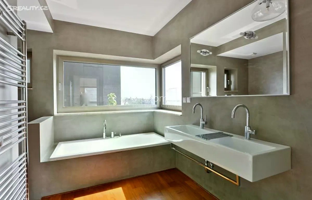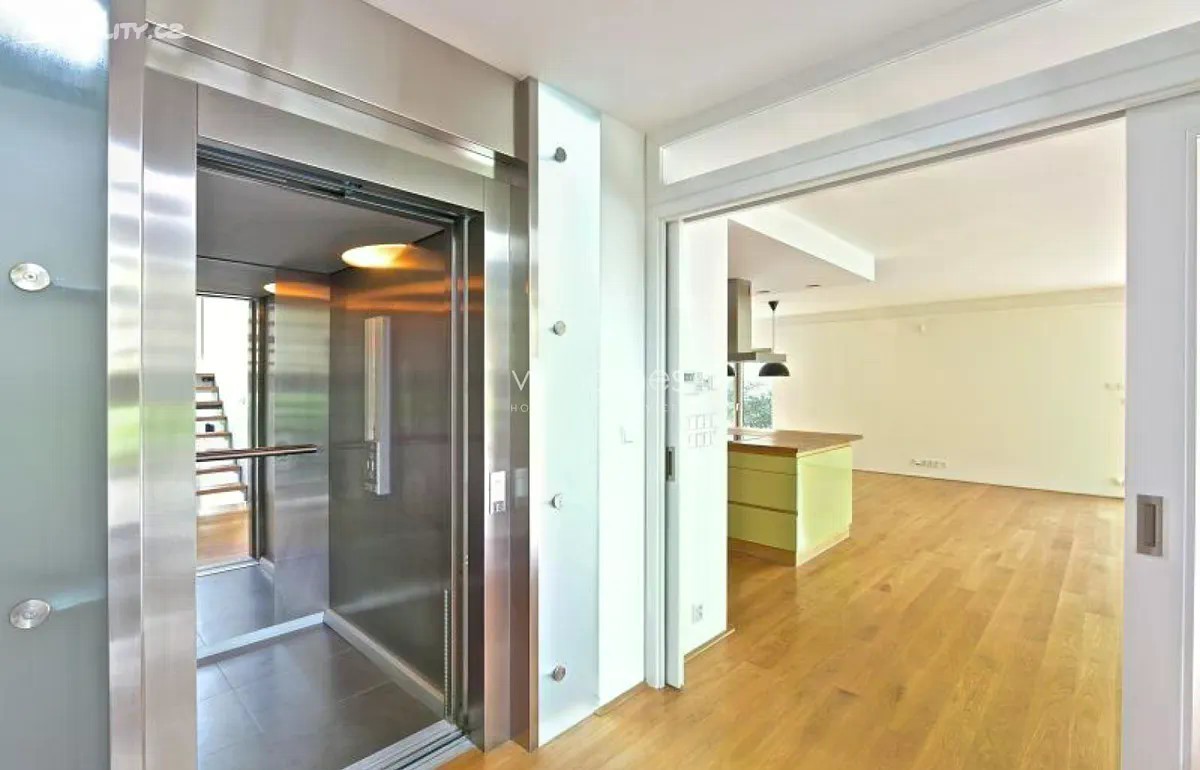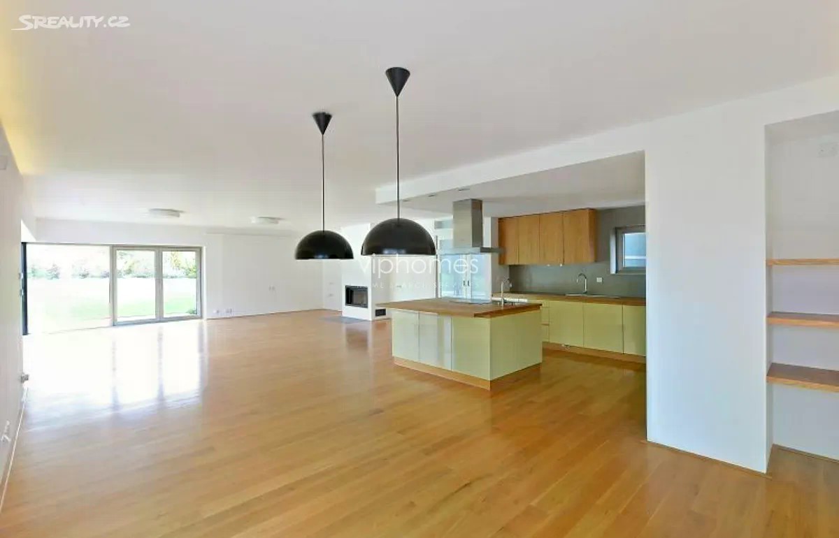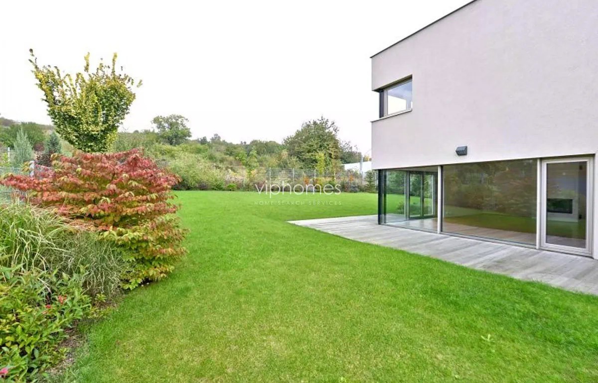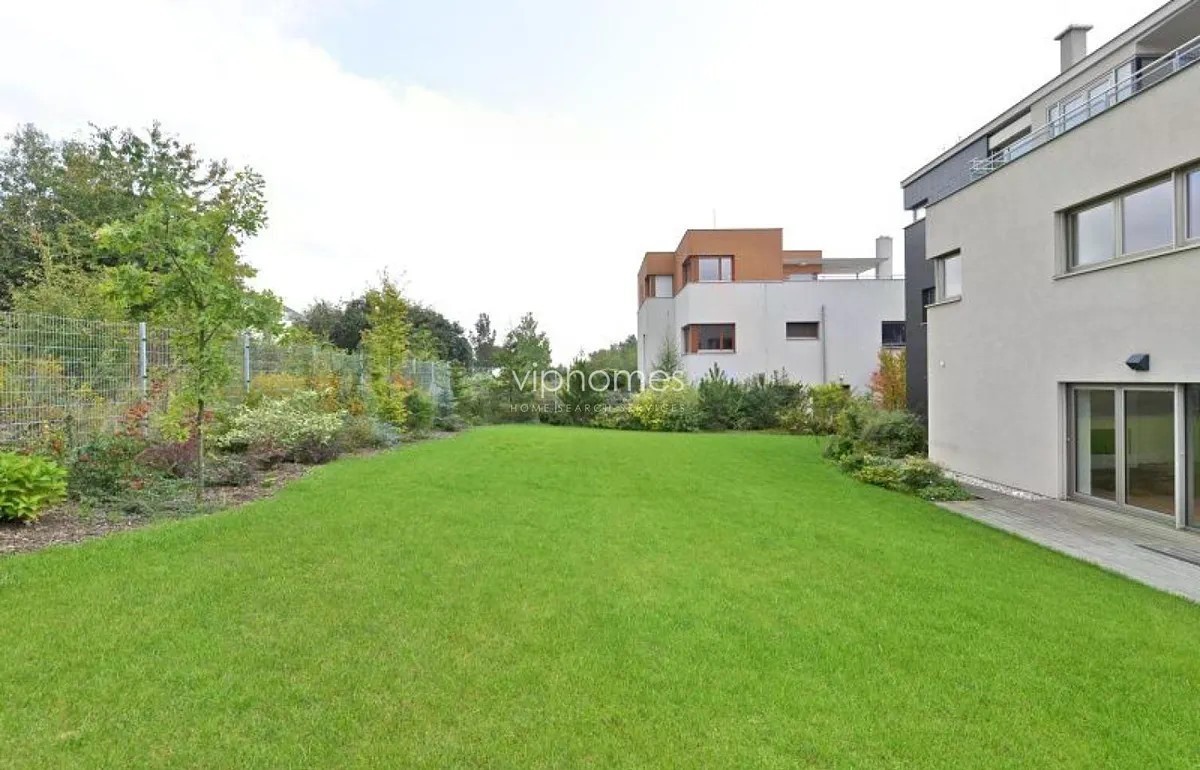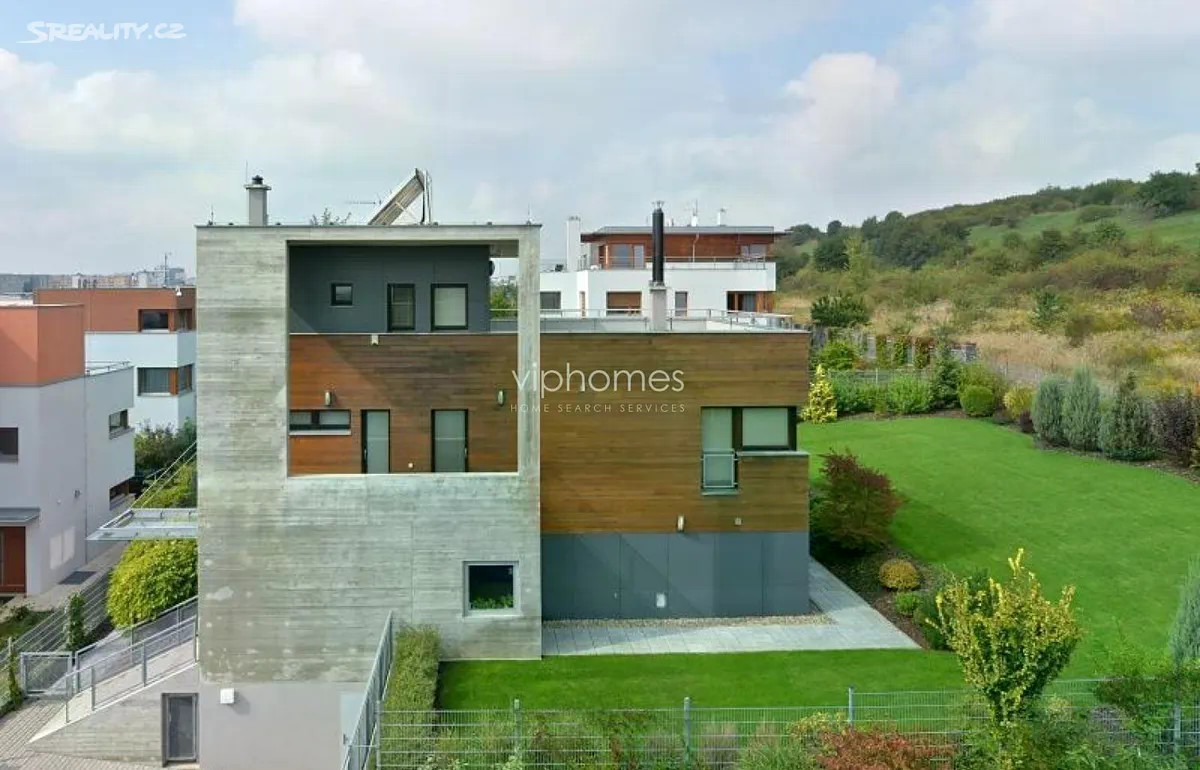 Luxusní novostavba vily s dekorativní zahradou situována v moderní rezidenční čtvrti, v pěší dostupnosti Německé školy a stanice metra Nové Butovice. Skvělým místem pro příjemné procházky, či vyjížďky na kole, je přímo sousedící přírodní park Vidoule a rozsáhlá oblast Prokopského a Dalejského údolí. Veškerá občanská vybavenost v blízkém okolí, autem jste za několik minut u přípojky dálnice D5, odkud je to jen 15 minut jízdy na letiště. Denní společenskou zónu vily tvoří rozlehlý přízemní otevřený prostor obývacího pokoje s kuchyní, jídelnou a přímým vstupem na profesionálně upravenou zahradu. Celá spodní fasáda domu směrem do zahrady je bohatě prosklena a v letních měsících umožní velkoformátové posuvné dveře propojit interiér s exteriérem velmi intenzivně. Dům nabízí celkem 6 ložnic, 5 koupelen a 2 velké terasy. Poslední patro s otevřenou dispozicí a čajovou kuchyňkou, ze sociálním zázemím, terasou - možno využít jako samostatnou jednotku. V suterénu je prádelna/kotelna, koupelna (sprchový kout, umyvadlo a toaleta), sklep, fitness či skladovací místnost a velká dvougaráž. Celý dům je klimatizován. Interiéry jsou vybaveny značkovými designovými prvky, jako jsou interiérové dveře, koupelnové obklady a dlažby, zařizovací předměty a koupelnová topná tělesa. Součástí obytného prostoru jsou šatny a velkorysé úložní prostory. K dalšímu vybavení patří elektrické žaluzie, dubové podlahy, mramorové parapety, alarm, SAT. Garáž pro dva velké vozy. K dispozici od Poplatky za služby a energie cca 10,000 Kč / měsíc.